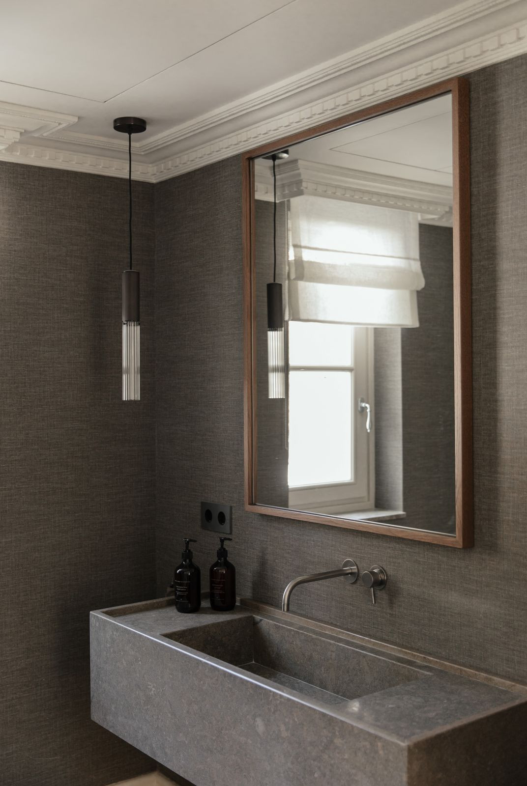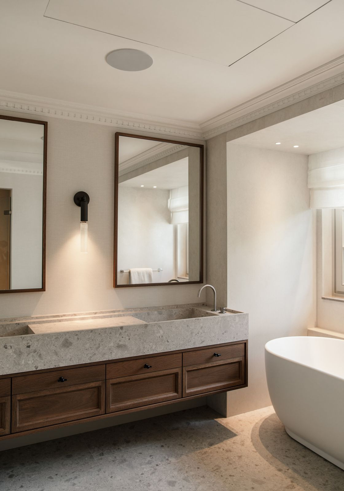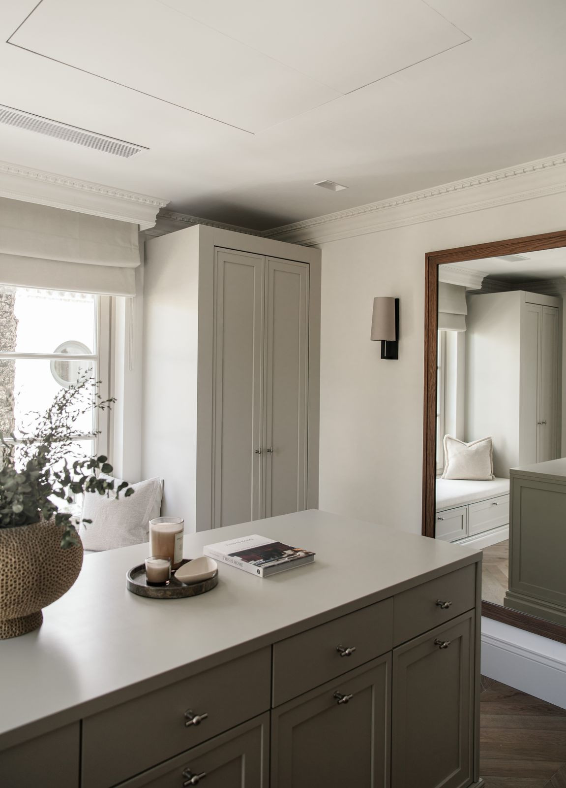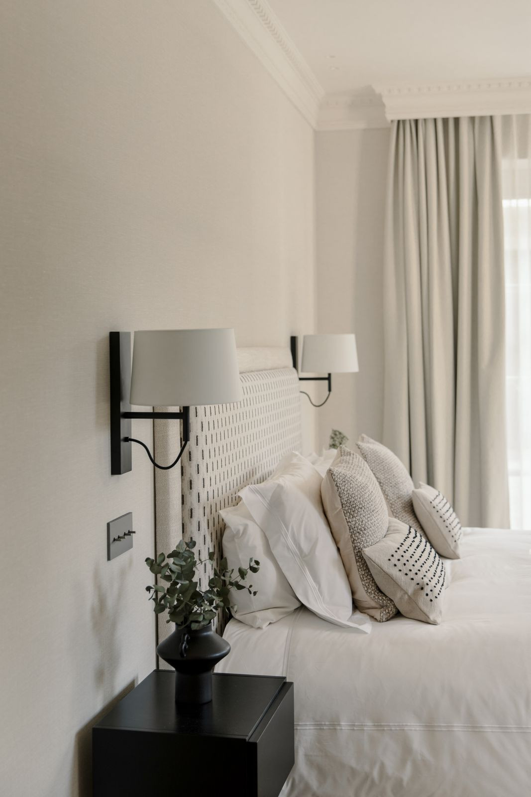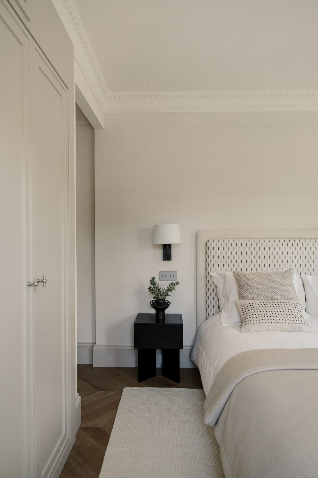 At the heart of the home is a beautifully tailored kitchen, marrying functionality with high-end design. The open-plan living and dining area is a masterclass in contemporary interior design, featuring curated furnishings, a soothing neutral palette, and warm wooden details. High ceilings and direct access to the terrace enhance the indoor-outdoor flow, infusing the space with natural light and an airy ambiance.