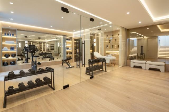 The villa’s thoughtful layout continues in the basement with a fully equipped gym, a spa, a cinema and games room, plus a wine bodega—perfect for entertainment and relaxation. Furthermore, a handy laundry room and an additional bedroom complete this level. The first floor is reserved for personal retreats featuring the master suite and two more spacious bedrooms, each enjoying magnificent views and meticulous appointments.