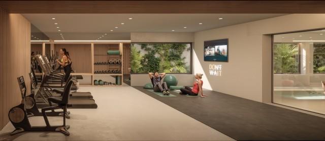 Designed to promote well-being, the communal areas are an extension of home life, providing spaces for relaxation and social connection. Highlights include garden-level and panoramic rooftop pools, ground-floor units with private gardens and beach-style pools, 24-hour security, concierge services, coworking spaces, and a fully equipped gym with sauna and spa facilities. Mediterranean-inspired landscaped gardens, underground parking with EV charging, and private storage rooms further enrich the living experience.