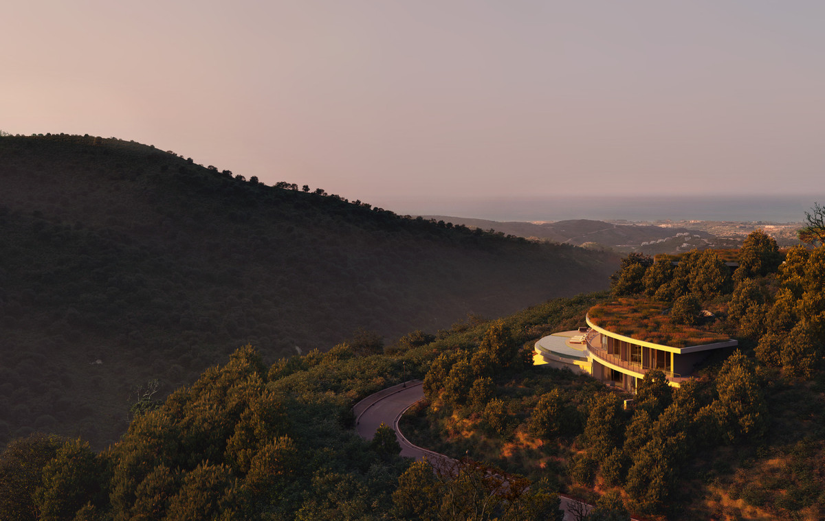 Perched atop the prestigious Monte Mayor in Benahavís, Malaga, this remarkable hillside residence redefines luxury living in perfect harmony with nature. Its distinctive curved design seamlessly integrates with the landscape, offering uninterrupted views of the valley, the Mediterranean Sea, and the lush surrounding nature reserve.