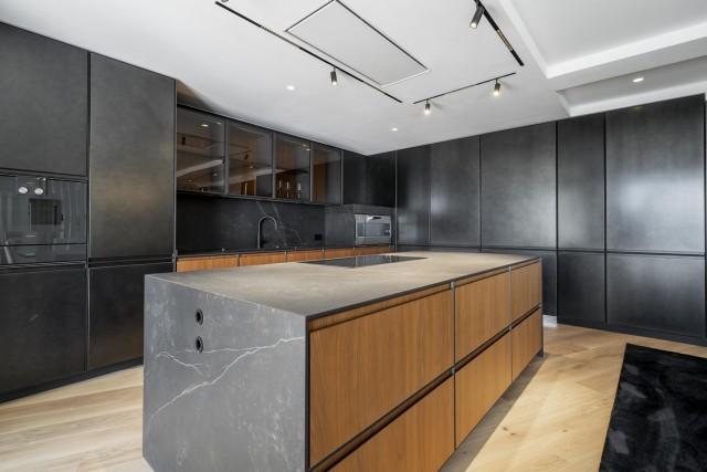 The layout is perfect for entertaining without losing privacy. A grand entrance door opens into a spacious hallway, which serves as a central point to the different areas of the home. To the right, a large guest toilet; straight ahead, the vast living room, warmed by an ethanol fireplace, well-distributed with a sitting area, a delicately separated dining area, and an open-plan kitchen with a central island and Gaggenau appliances. The entire space is framed by floor-to-ceiling windows that open to a generous terrace, featuring an outdoor kitchen, barbecue, lounge area, and stairs leading to the pool, surrounded by a solarium and a meticulously landscaped garden. Avocados, lemon trees, and mangoes thrive here, all with a sea view. A laundry room beside the kitchen adds convenience.