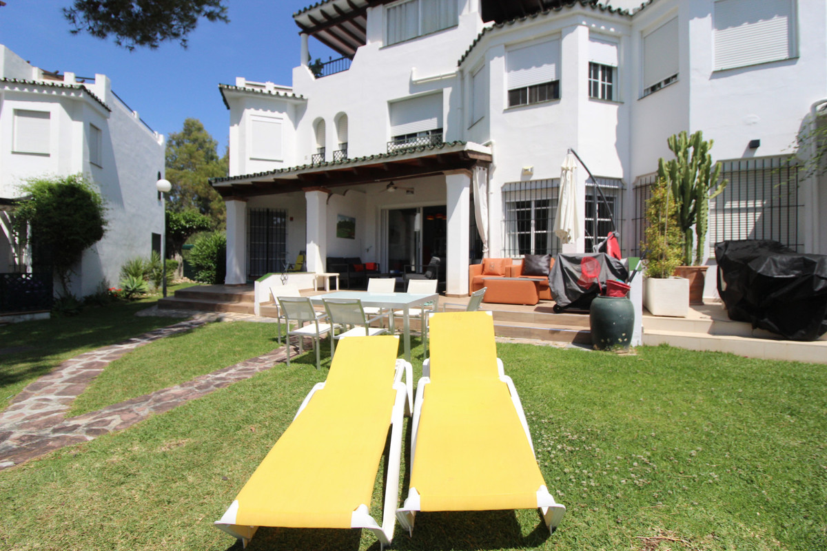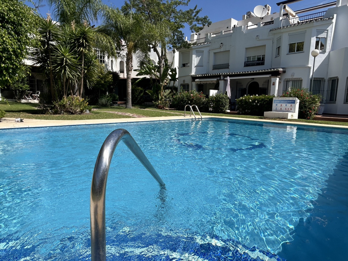 Enjoy the communal garden from the lounge porch! On the first floor are the 3 bedrooms and 2 bathrooms, one of them en suite with shower and large dressing area. New wardrobes in all bedrooms . It is a closed and very well maintained community. The house has several Porches, and huge Solárium with a wooden roof recently put so this new one. Ideal for chill out area and outdoor dinners with barbecue and closed part as well as laundry room. The fantastic panoramic views of the whole wooded area and the mountains of La Quinta. The urbanization is close to everything: Supermarkets, Colleges, Shops, Restaurants etc.. is ideal for Holidays or for families. And perfect to live all year. It has general air conditioning throughout the house and blinds. San Pedro de Alcántara is a 4-minute drive from Puerto Banus. It is for all an ideal house for families and also for investment and enjoy Marnbella with everything next to it;