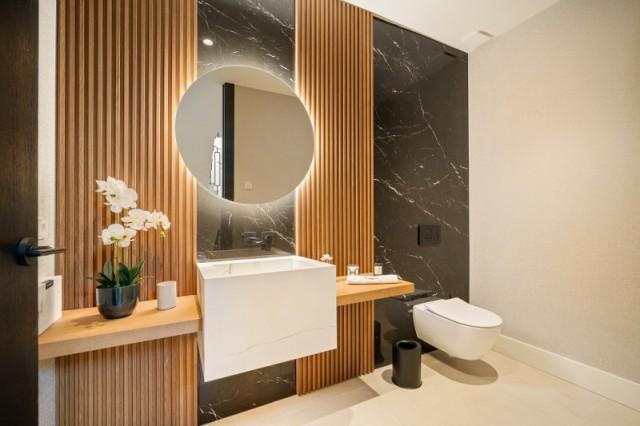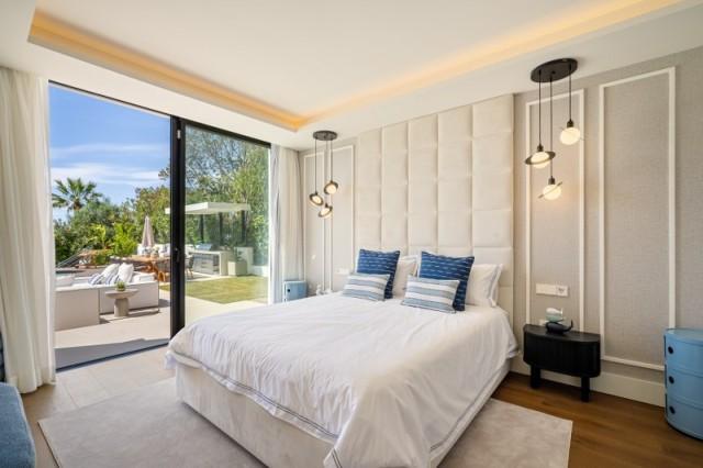 With 6 distinctive bedrooms, the luxurious master suite occupies the entire first floor, boasting spacious walk-in closets, an exquisite marble bathroom with a rounded bathtub, an office space, and access to a generous private terrace offering stunning sea views. Experience one of Marbella's most distinguished properties, complete with a rooftop terrace, spa, private gym, indoor pool, cinema room, and a private putting green.