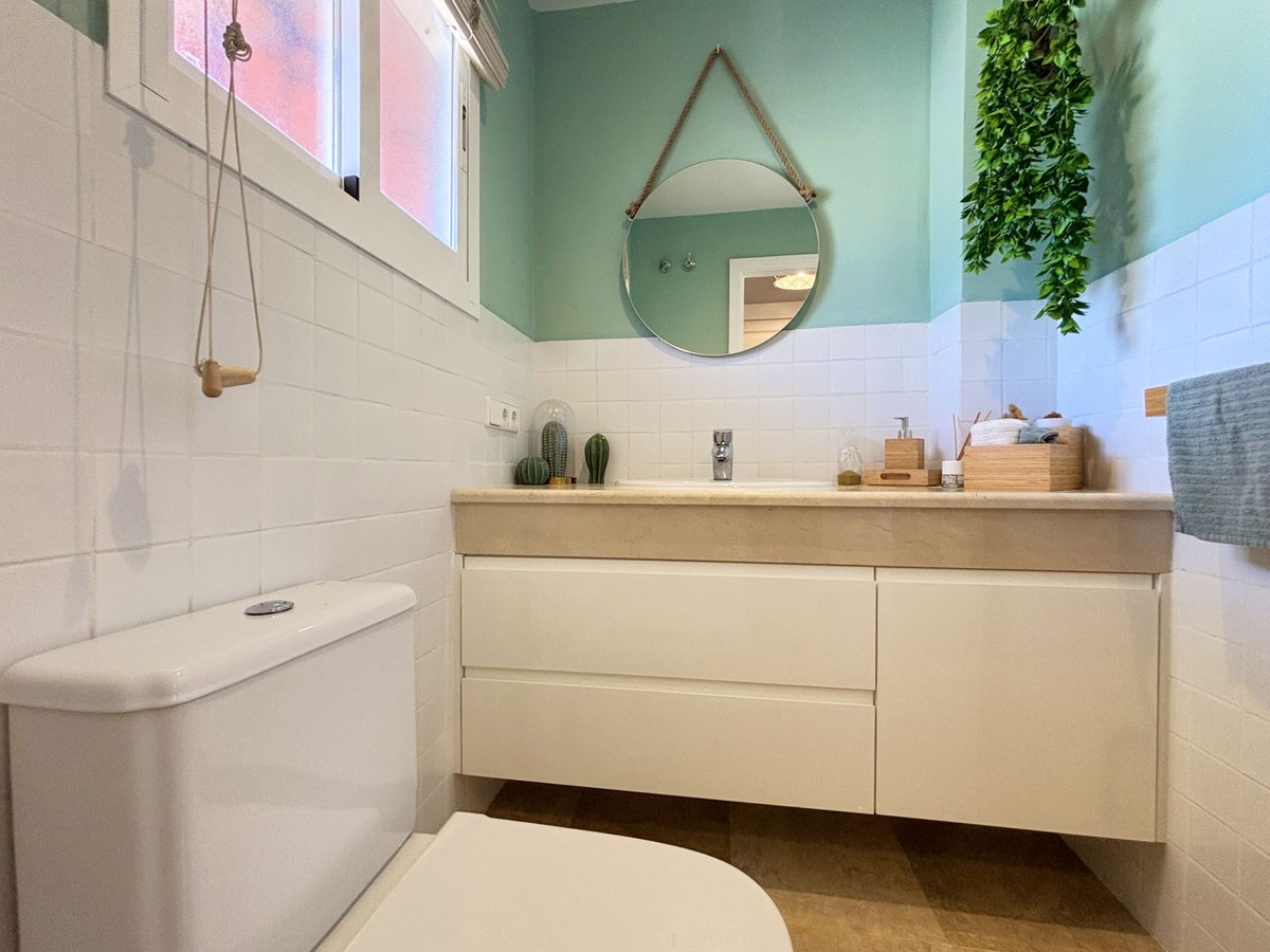 Located in a peaceful residential development in Estepona, just a few minutes' drive from all amenities, shops, and schools, this bright south-facing townhouse is spread over three comfortable levels — perfect for families or as a second home on the Costa del Sol.The basement level features a spacious 53 m² private garage, ideal for both vehicles and storage.The main floor offers a guest toilet, an independent kitchen, and a cozy living-dining room with direct access to a pleasant terrace, which in turn provides easy access to the communal areas and swimming pool — perfect for enjoying the Mediterranean climate.Upstairs, there are three naturally bright bedrooms and a full bathroom; the master bedroom also includes a small private terrace.The community is well-maintained and quiet, with a swimming pool and green areas, all with low maintenance costs.An excellent investment opportunity, whether for year-round living or as a high-yield rental during the peak season.Don’t hesitate to come and visit!