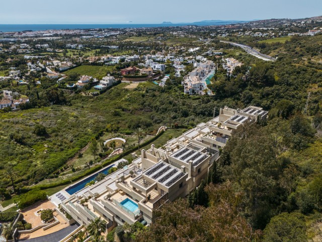 Perched in the elevated and serene Supermanzana JKL enclave of Nueva Andalucía, this expansive duplex penthouse offers a rare blend of luxury, privacy, and panoramic vistas. Located within the prestigious Los Arrayanes development, this striking residence spans an impressive 363 m² of interior space, complemented by 439 m² of private terraces, delivering an exceptional indoor-outdoor lifestyle.