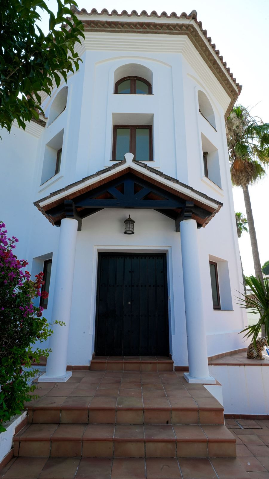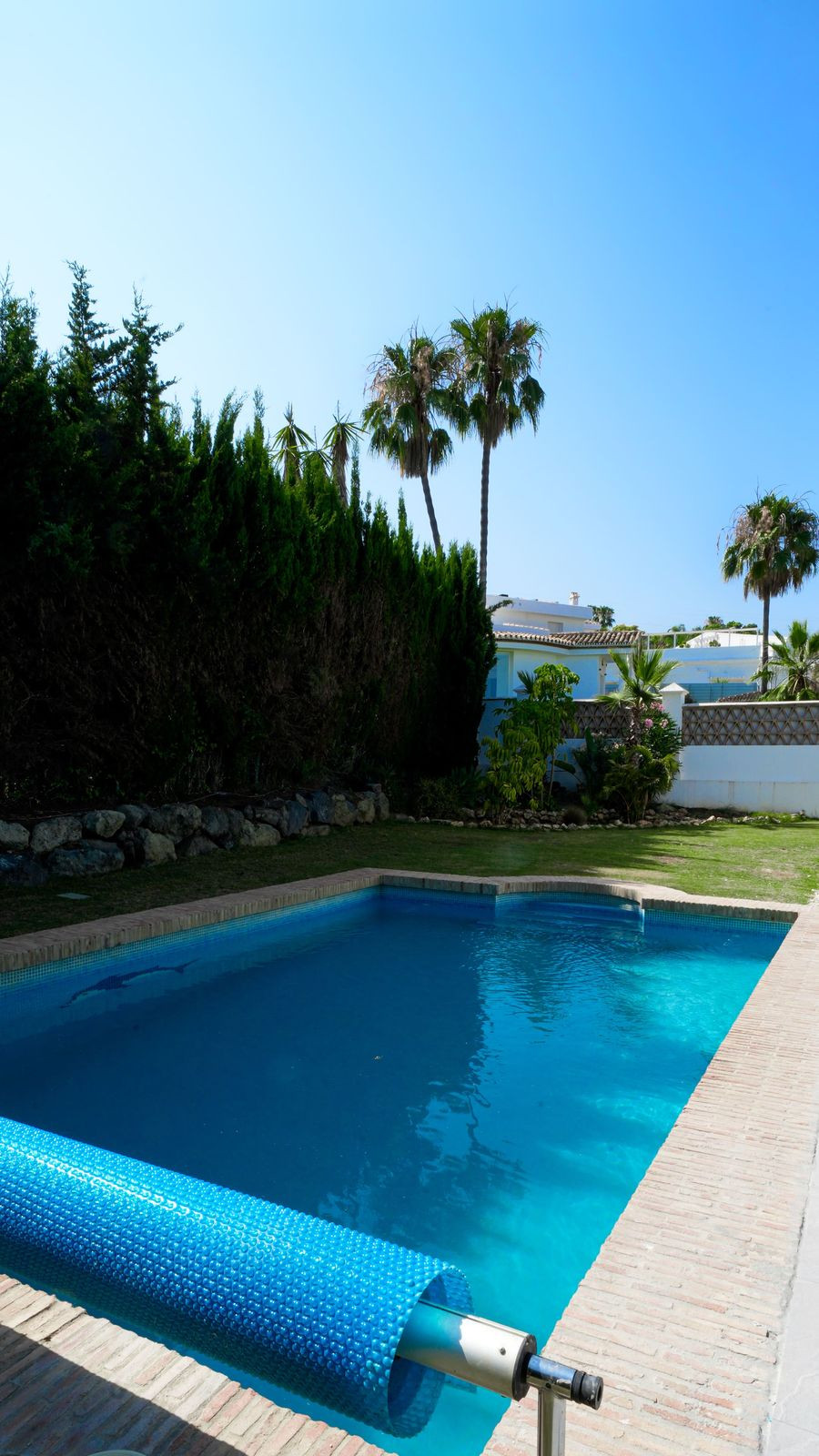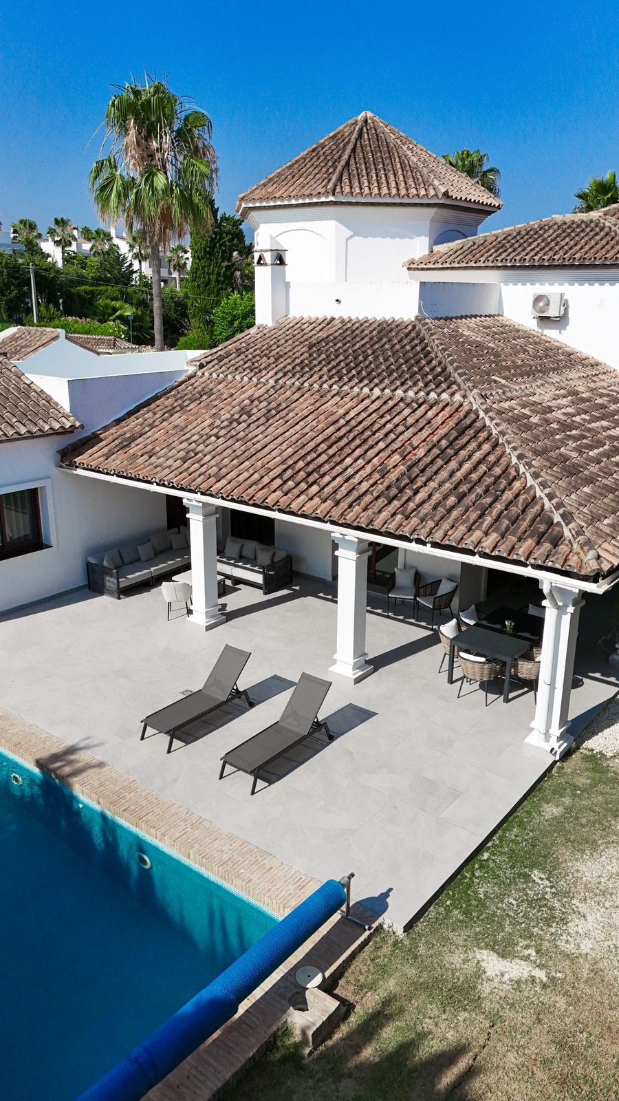 Independent villa located in a quiet and consolidated residential area of Estepona, on a 973 m² plot, with a private garden, swimming pool, and several covered terrace areas ideal for enjoying the climate all year round.