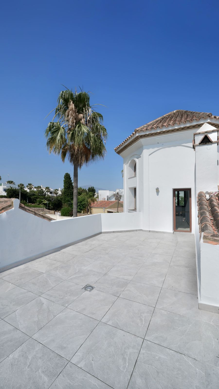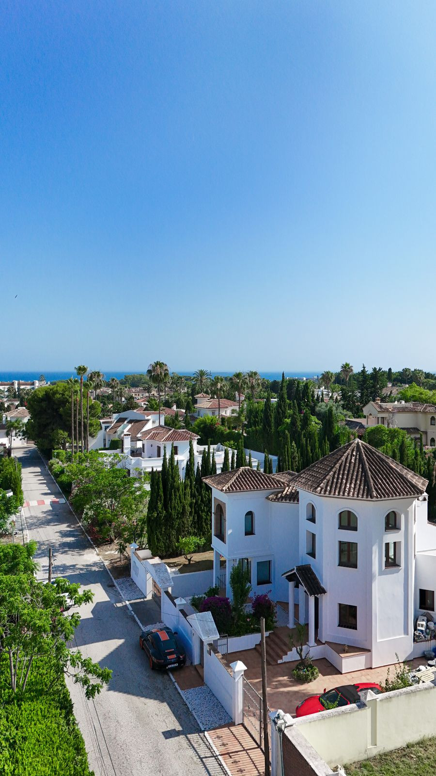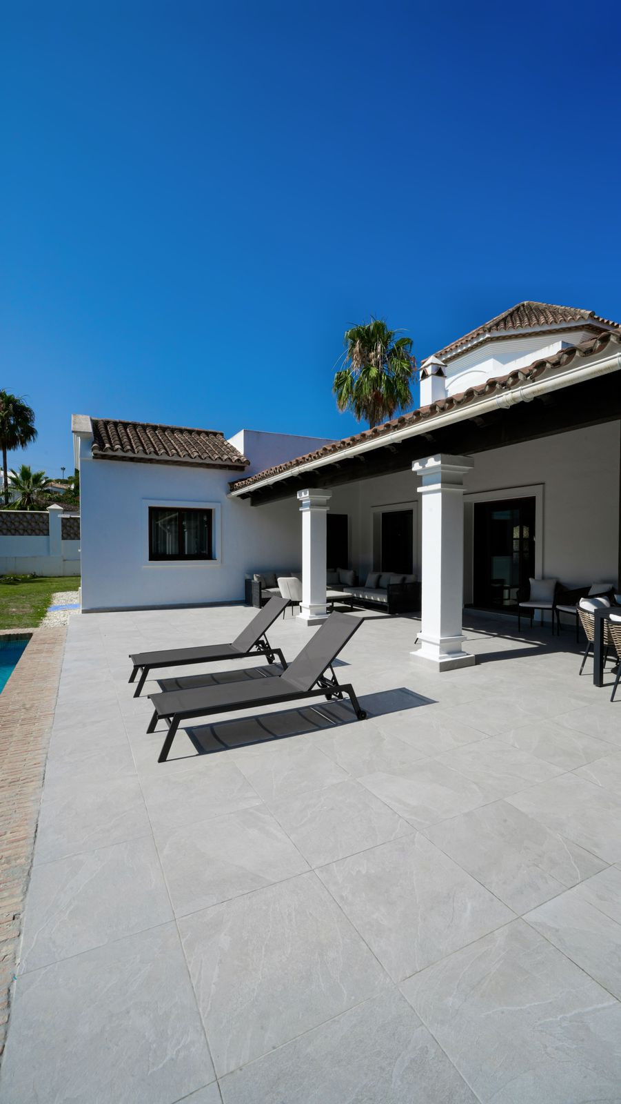 Independent villa located in a quiet and consolidated residential area of Estepona, on a 973 m² plot, with a private garden, swimming pool, and several covered terrace areas ideal for enjoying the climate all year round.