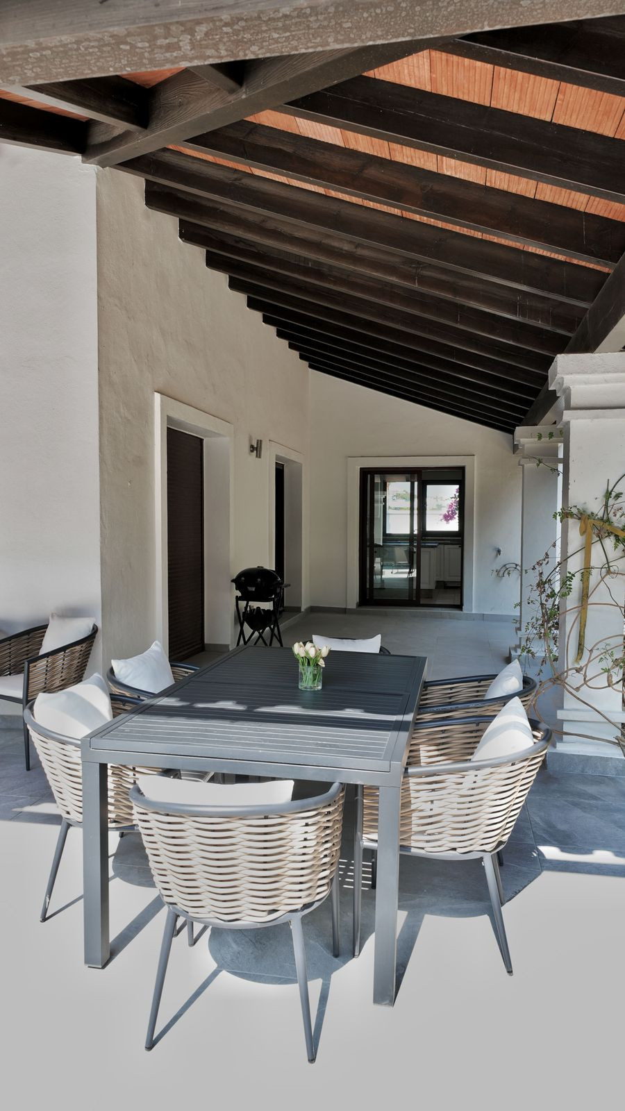 The property has a private garage for two vehicles, a technical room, and extensive covered outdoor areas that provide versatility and comfort to the whole.
