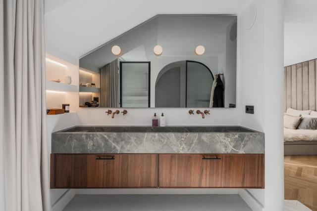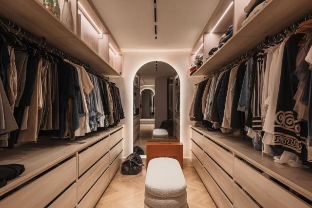 The master suite is particularly impressive, offering 16 meters of custom wardrobe space, a Swedish hotel-grade bed measuring 210 cm, and a luxurious en-suite bathroom with a double hand shower and oversized rain shower. A hidden office and an additional 20-square-meter storage space provide practicality without compromising the aesthetics of the living space. All lighting is dimmable, and the apartment features underfloor heating in all bathrooms as well as a zoned Airzone climate control system for ultimate comfort.