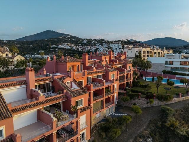 A rare opportunity to enjoy sophisticated hillside living in one of Benahavís’ most desirable residential communities. Located within the secure and tranquil Torre Halcones development, this meticulously renovated duplex penthouse spans two floors and approximately 180 square meters of interior space, complemented by a generously sized terrace with sweeping panoramic views of the Mediterranean Sea, nearby golf courses, and the Sierra de las Nieves mountain range.