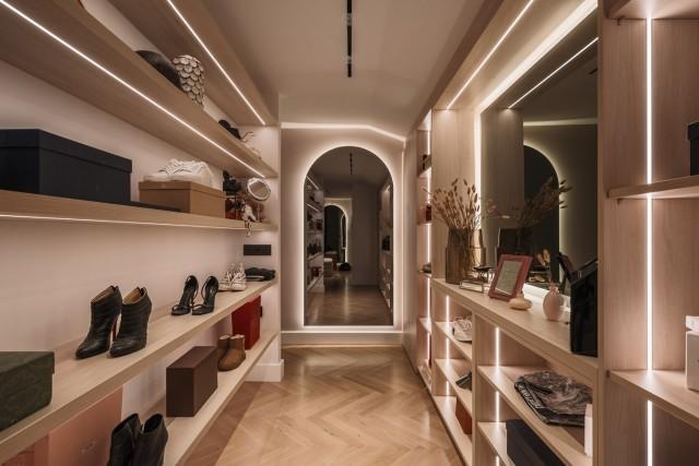 A custom-built Nordic design kitchen serves as a focal point of the home, crafted in warm walnut wood and fitted with Gaggenau and Smeg appliances for both beauty and performance. The kitchen’s seamless integration with the dining and living areas makes it ideal for both casual meals and formal gatherings. Every piece of carpentry within the apartment is bespoke and tailor-made, ensuring a refined, cohesive aesthetic throughout.