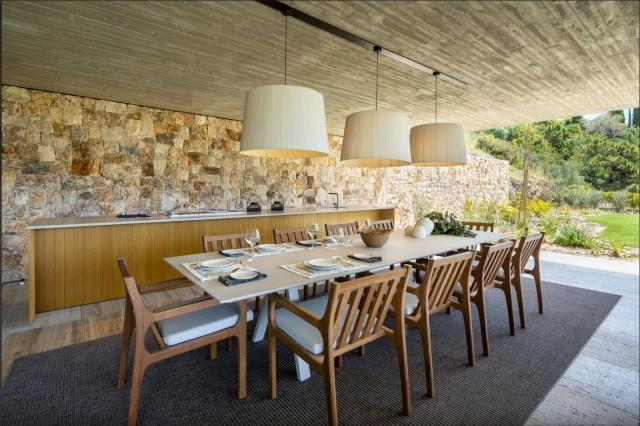 Inside, every detail articulates modern sophistication, with amenities that include a heated swimming pool and Turkish bath, as well as a private cinema room and wine cellar. These indulgent features create an environment where luxury meets comfort. Furnishings throughout the villa are selected to echo the modern architectural lines, ensuring an ambiance that is both elegant and welcoming.