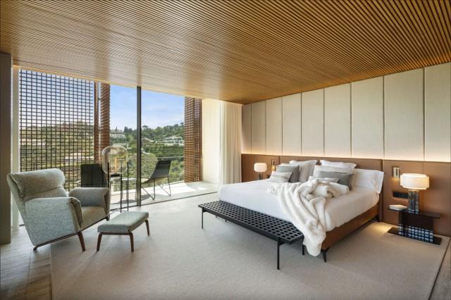 The outdoor spaces celebrate the region’s favorable climate with two inviting swimming pools and multiple terraces designed for relaxed gatherings while enjoying stunning vistas. The strategic orientation of the villa ensures beautiful sunset views over the Mediterranean, rendering every moment spent here a picture-perfect scene.