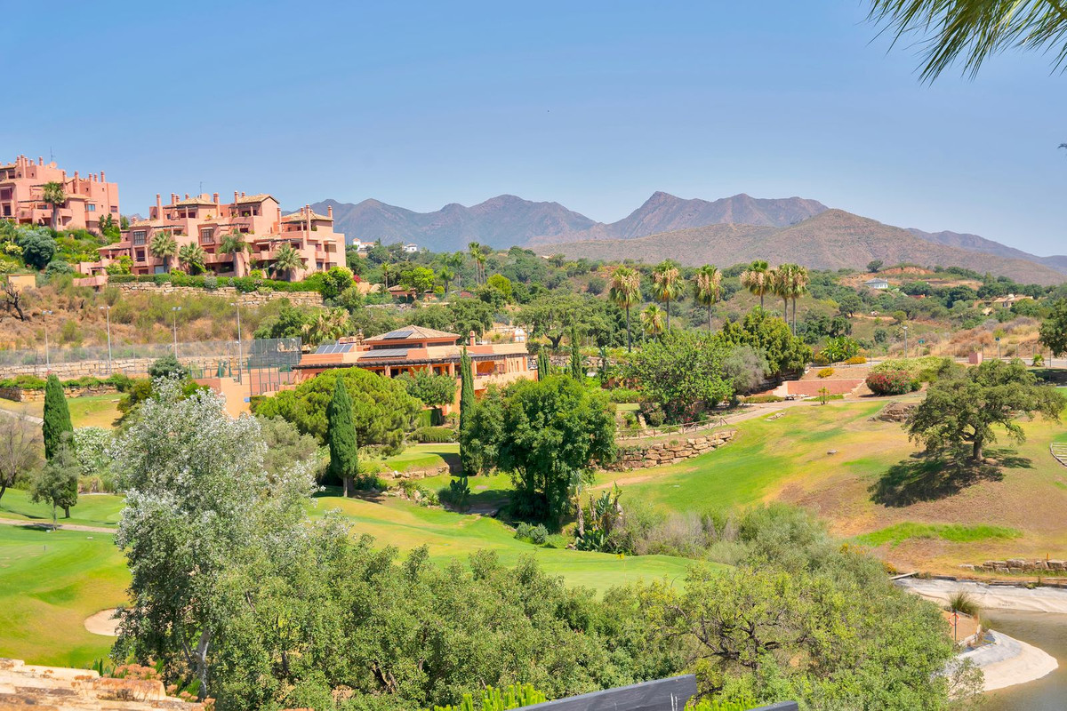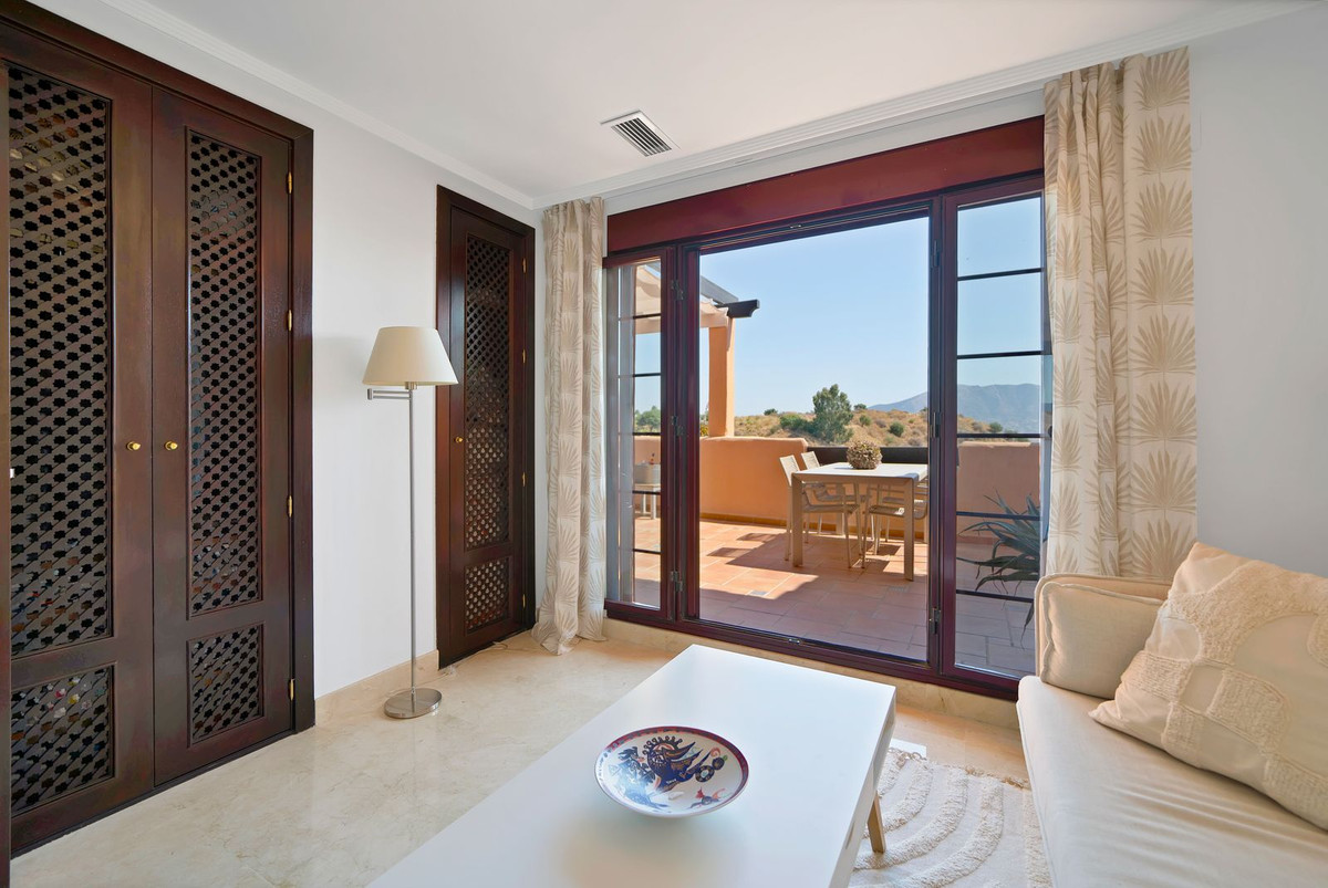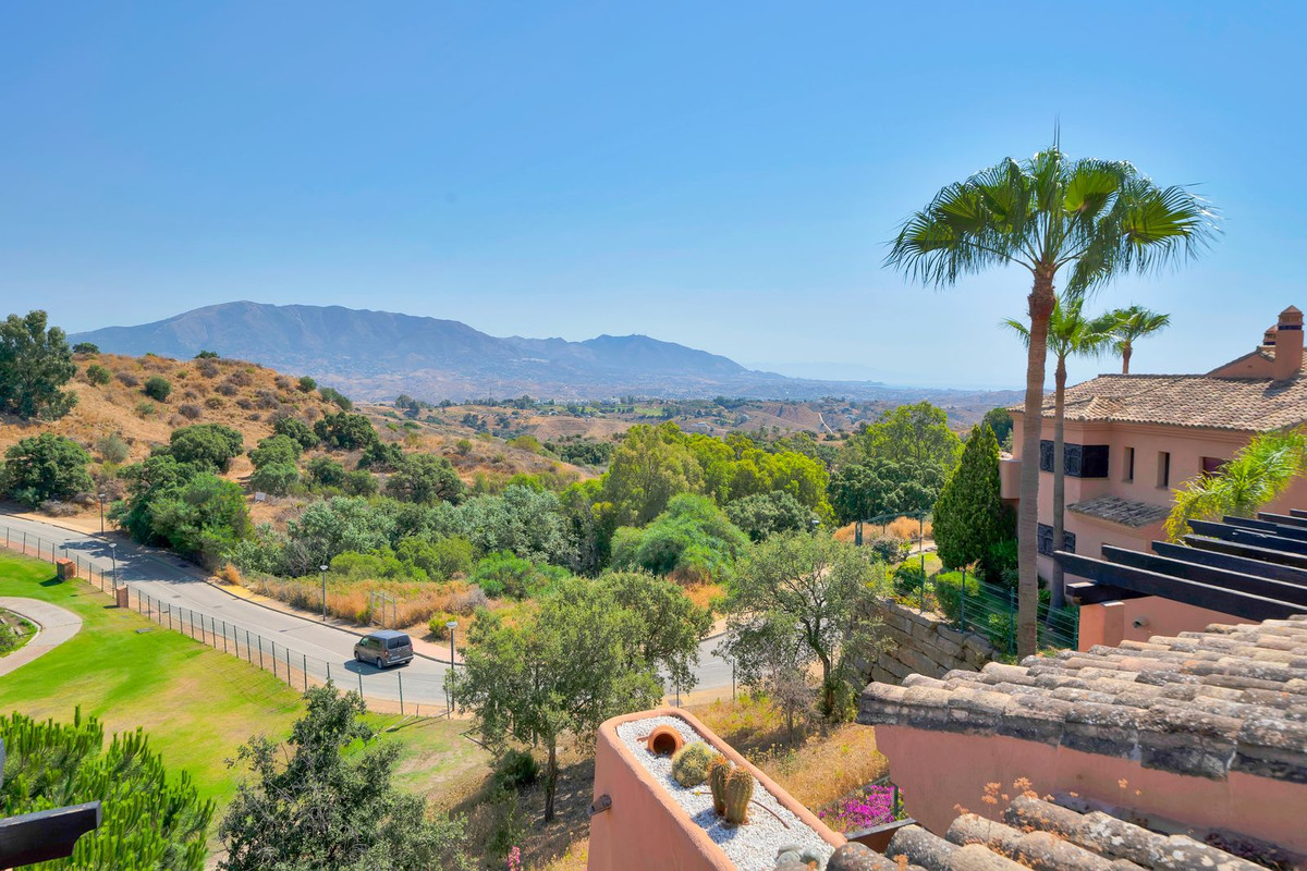 The duplex penthouse home has one of the best positions within what is a large and popular residential complex. Built on the undulating hillsides of upper Elviria, the community uses authentic Andalusian architecture to create a beautiful environment comprising of pretty paved walkways, Moorish-style water features and stunning Mediterranean gardens. The community is wonderful for those who wish to benefit from walking within the coasts natural landscape, with incredible views down through the valley of la Cala de Mijas to the sea and the impressive mountains leading all the way up the coast as far as Sierra Nevada. In the winter the snow on the peaks of the famous ski resort can be seen from the property.