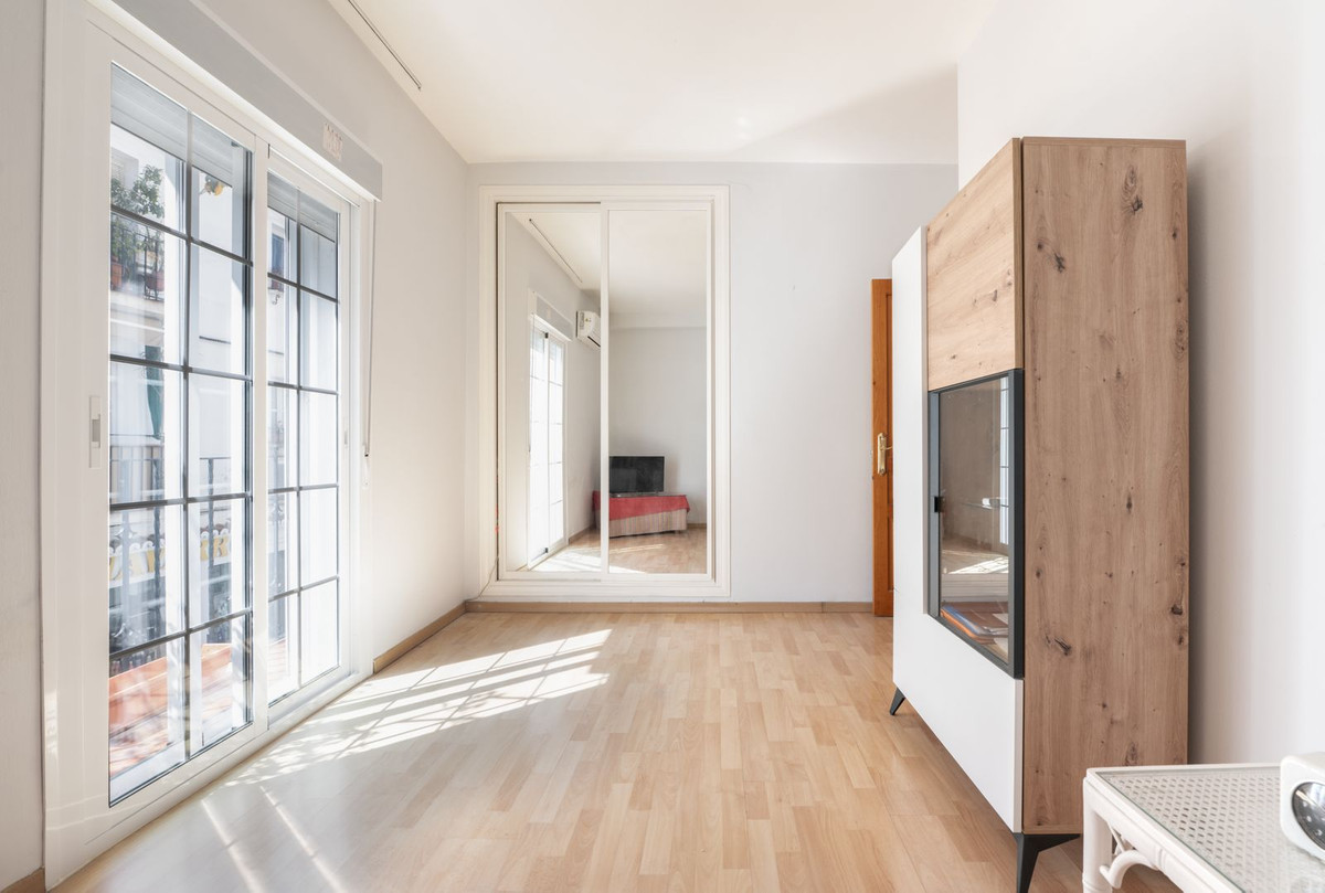 Access is via Calle Peral, which is also accessible by car. The apartment is completely exterior-facing: the living room features a large window overlooking Calle Peral, while the sitting room has a balcony facing Calle Castillejos. Thanks to its east and southwest orientation, the home enjoys beautiful natural light throughout the day and excellent ventilation.