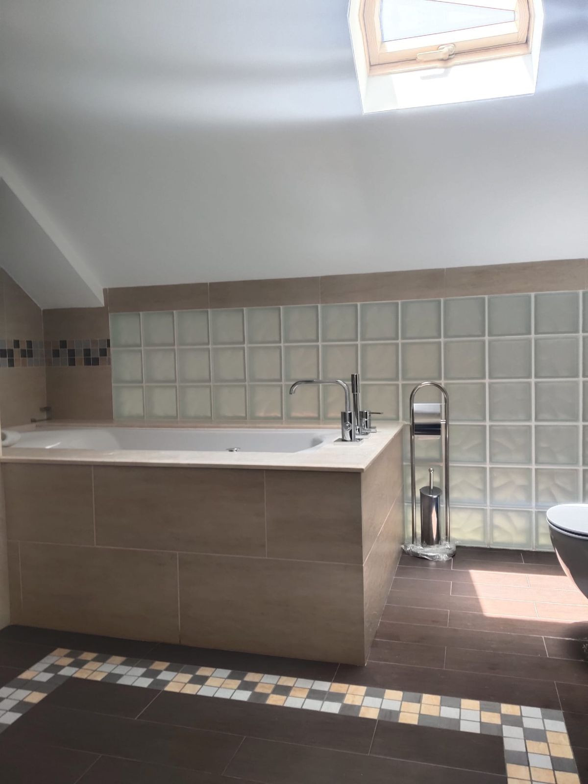 * Renovated bathroom with whirlpool bathtub, separate shower, and natural light