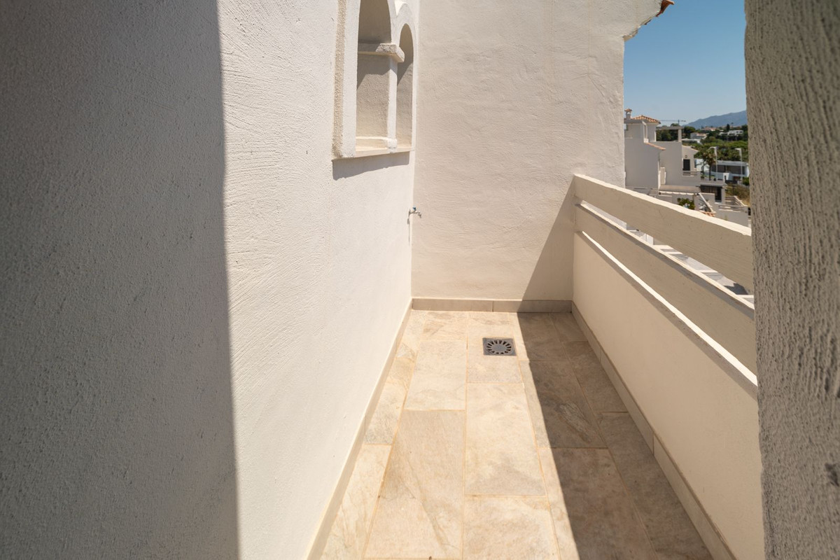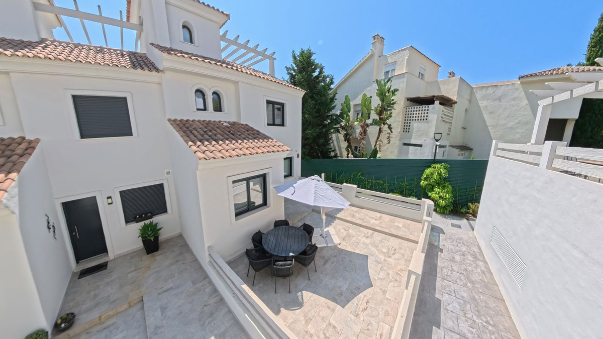 Located within the exclusive El Campanario area of Estepona, this elegant corner townhouse is part of a peaceful development of just 47 homes. Designed with traditional Andalusian architecture, the property enjoys spacious terraces and an abundance of natural light throughout.