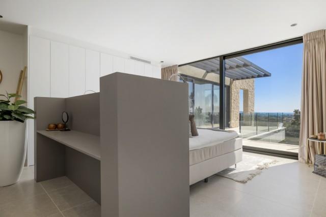 This is a newly contemporary built villa situated in a prestigious golf urbanization in Benahavís. Positioned frontline golf and facing east to south, the property offers panoramic views of the Mediterranean Sea, the coastline, and the iconic La Concha mountain.
