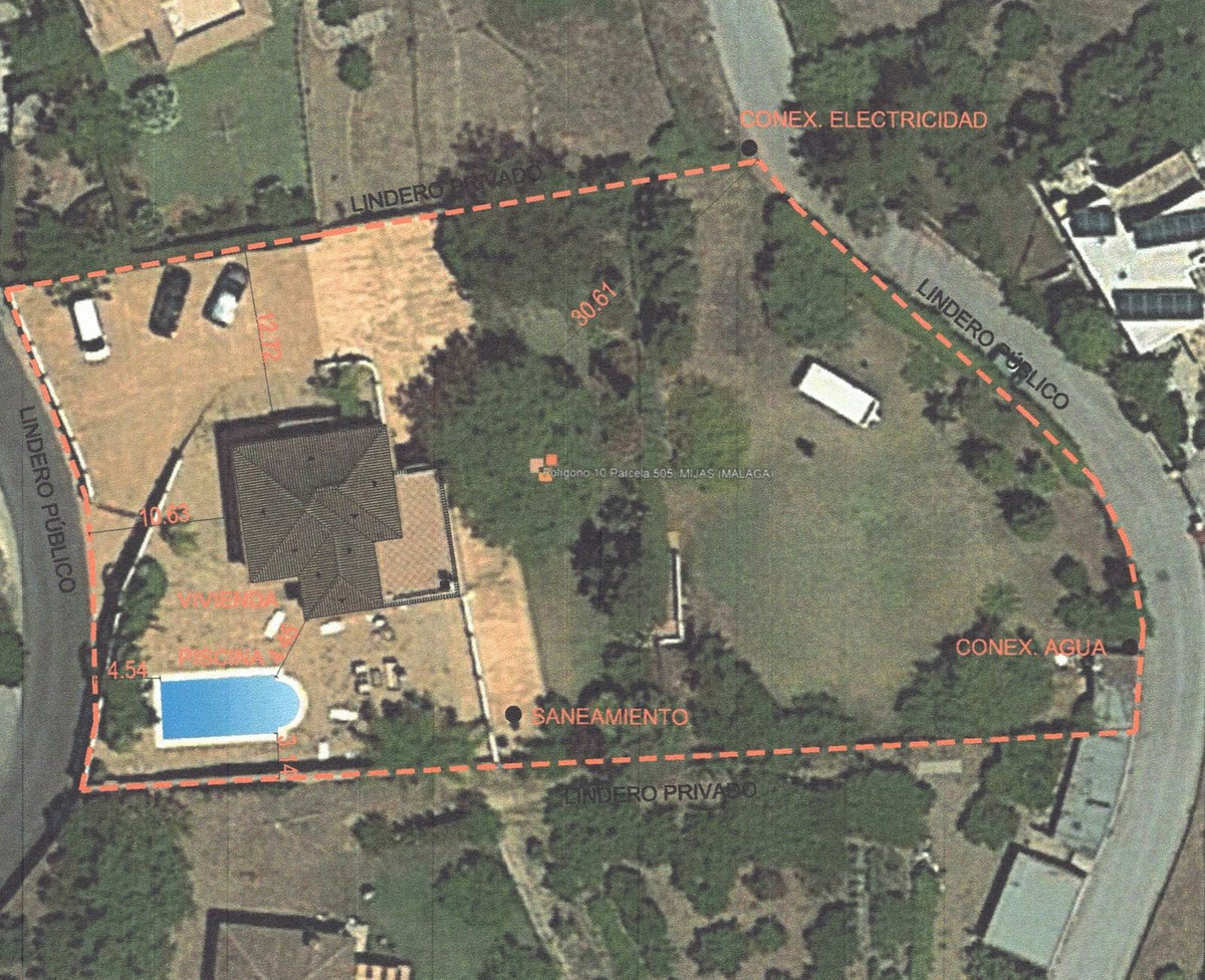Just 4 minutes by car (2.5 km) from the vibrant centre of La Cala de Mijas, this elegant villa offers 378 m² of built area on a generous 2,559 m² plot, divided into two parts.