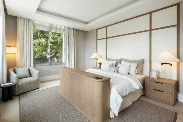 Positioned on a flat 2,370 m² plot with 712 m² of internal space, the villa combines sharp architectural lines with warm natural materials and traditional touches, creating a timeless and inviting character. Expansive glass doors open to landscaped gardens, a large swimming pool, and multiple outdoor dining and lounge areas. The property also enjoys impressive views of La Concha mountain. It stands out as one of the only homes on the Golden Mile with a full-size private grass tennis court.