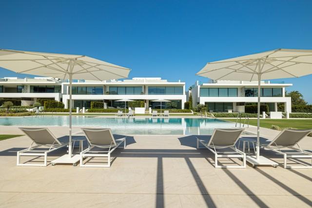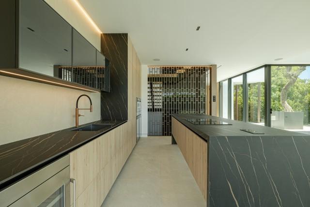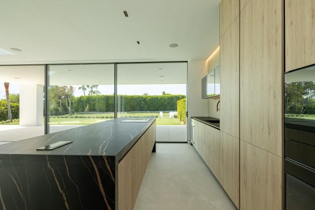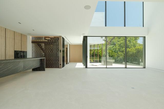 Ground Floor: A bright entrance hall leads into a spacious open-plan living and dining area, seamlessly connected to a designer kitchen fitted with state-of-the-art Gaggenau appliances. Large sliding doors open onto a generous private terrace and landscaped garden – ideal for entertaining or unwinding under the Marbella sun.