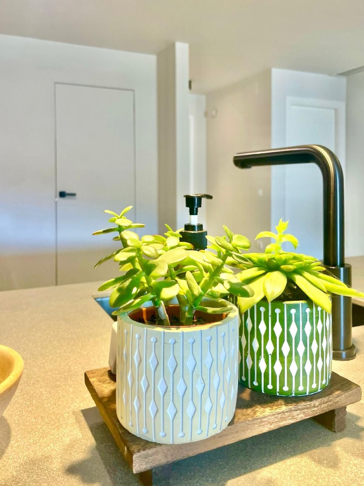 The brand-new high-end Italian kitchen combines design and functionality: stone countertop and backsplash, all lower cabinets with drawers, etc.