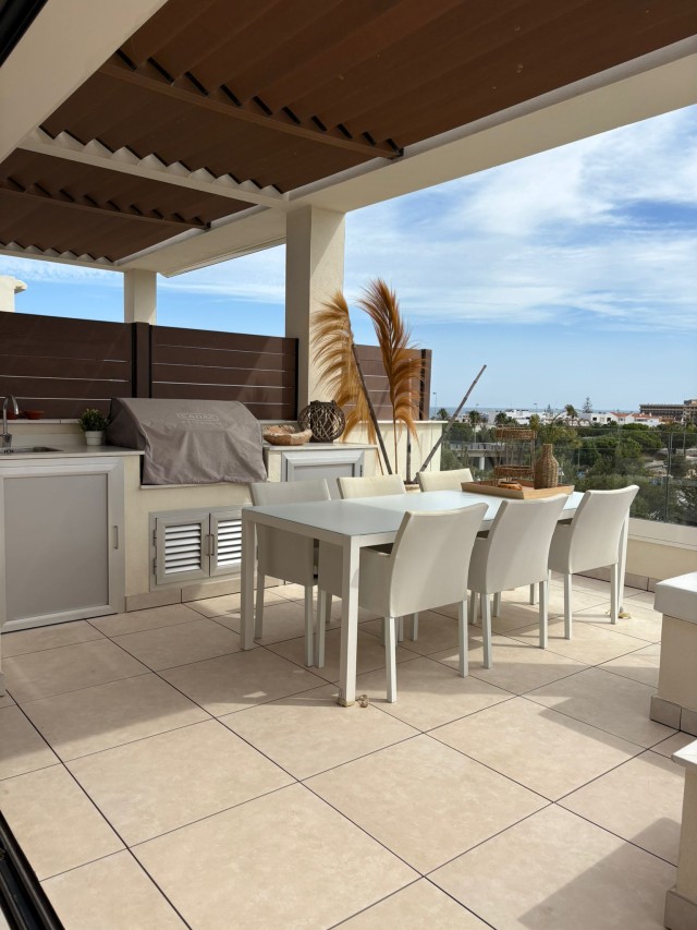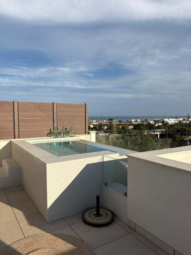 The penthouse is on the first floor. It is stylishly furnished and has a large terrace plus a solarium with a private plunge pool where you can relax in the sun. The terrace also has an outdoor kitchen with a dining table and 6 chairs, comfortable lounge furniture. From the terrace you can enjoy views of the surrounding area, the sea and the mountains of Mijas.