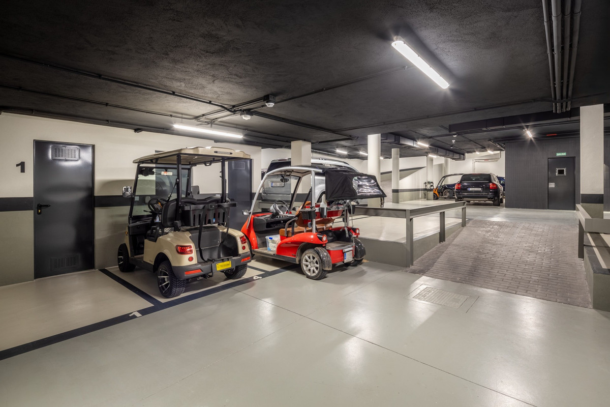 The fully equipped kitchen is a chef’s dream, fitted with top-of-the-line Gaggenau appliances and an stylish drinks cabinet, offering the perfect setting for entertaining. The open-plan design flows seamlessly into the expansive outdoor area—one of the apartment’s most impressive features. The spacious terrace offers a fully equipped barbecue area, a luxurious Jacuzzi, and breathtaking views, creating the ideal space for relaxation or hosting unforgettable gatherings in the Mediterranean climate.