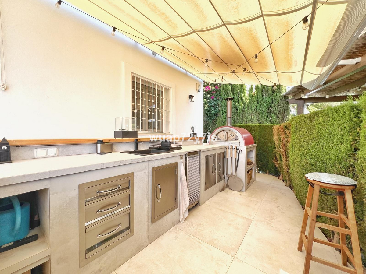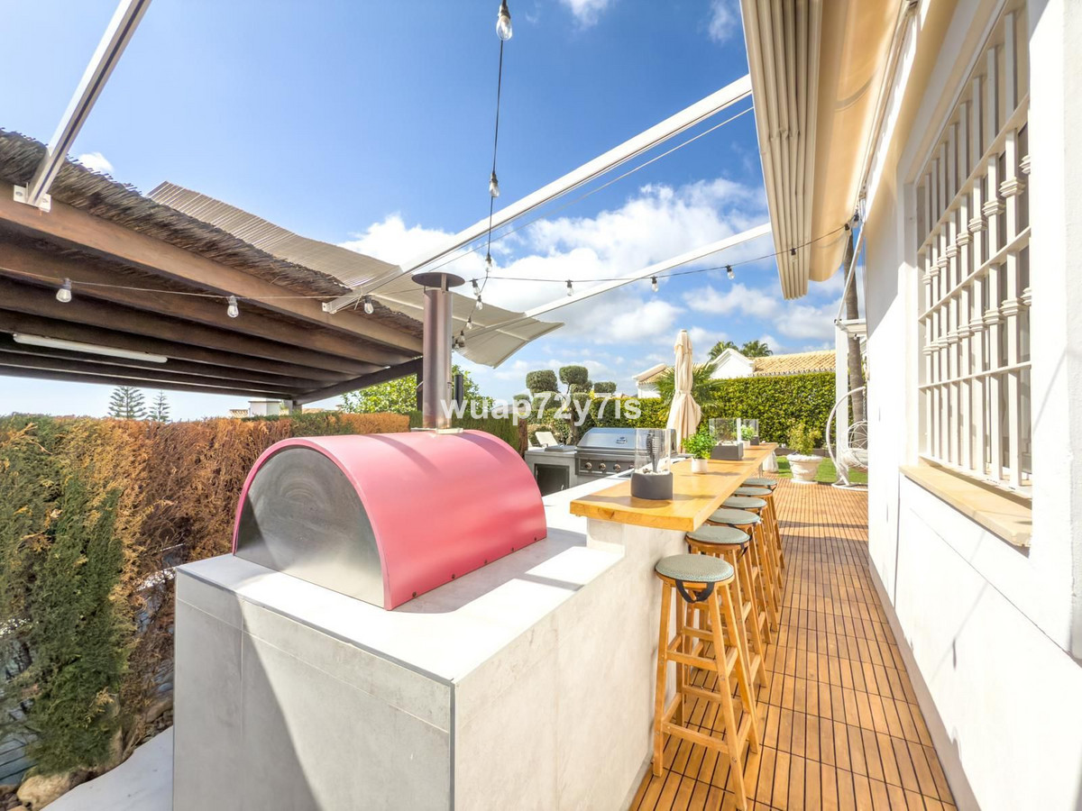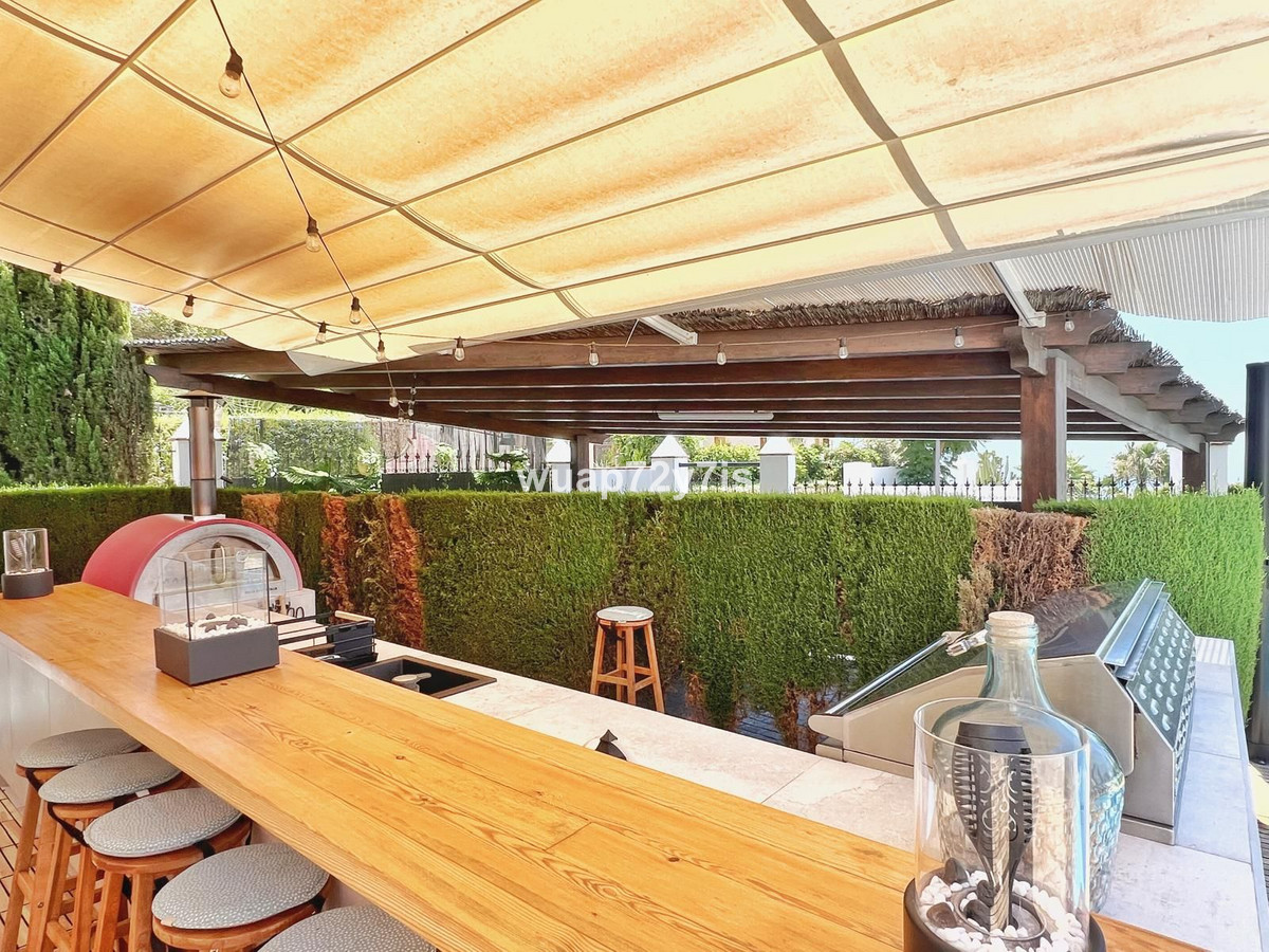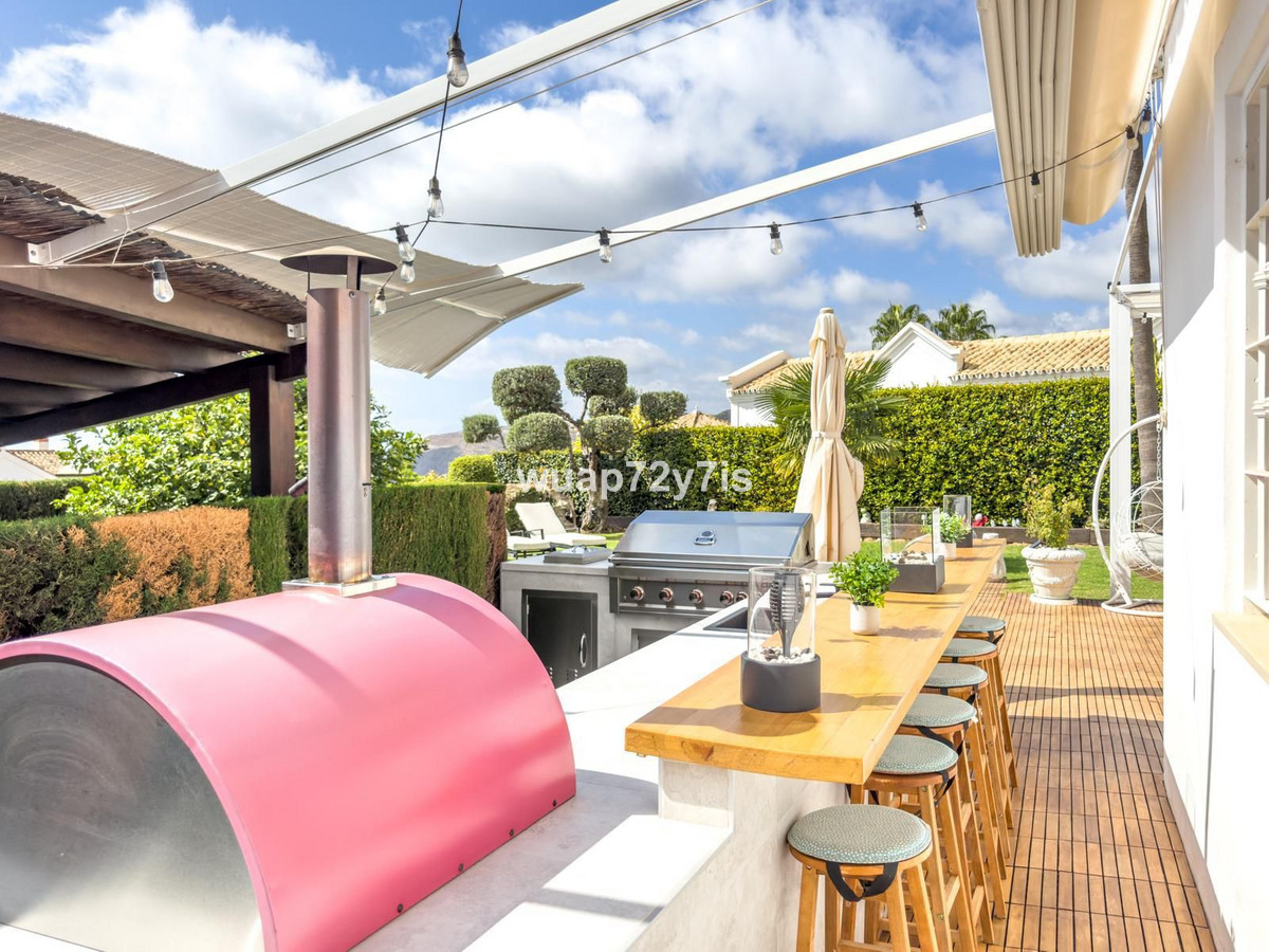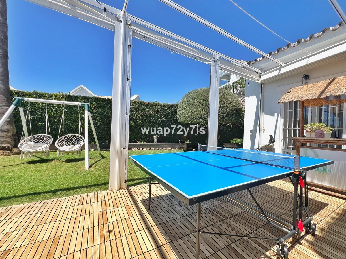 The outdoor areas of the property are exceptional, featuring a private swimming pool and various terraces where you can enjoy spectacular open views to the sea, the surrounding hills, and the majestic La Concha mountain. There is a professionally equipped outdoor kitchen with a barbecue and real pizza oven, ideal for alfresco dining and entertaining. A ping pong table and multiple seating areas add to the relaxed and social atmosphere.