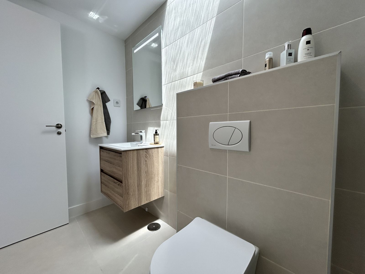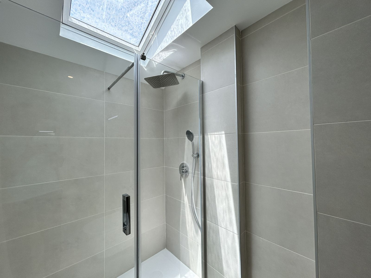 The living room and kitchen are integrated and open onto the large terrace through high-performance sliding doors, maximizing the natural light and outdoor living. Comfort and efficiency: air-source heat/air conditioning in all rooms, underfloor heating in bathrooms, aluminum/PVC exterior carpentry with double thermoacoustic and security glazing, and pre-installed motorized blinds in the bedrooms and living room.