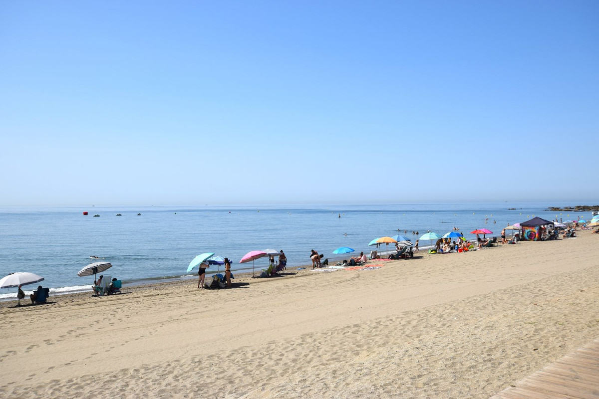 This is a fabulous 3 bedroom apartment in the front line beach complex of Las Mimosas in La Cala de Mijas. Set on the first floor with views over the beautiful gardens, pools and Mediterranean, this is the perfect spot for enjoying the beach life all year round. The apartment comprises an open plan kitchen which has been recently refurbished, large lounge with access to the terrace, master bedroom with en-suite, two further bedrooms and one bathroom. Access is on the street level or go down one level via stairs or lifts to the gardens and pool with direct access out to the boardwalk and the beach. Properties don't come up for sale often in this highly sought after complex so early viewing is highly recommended.