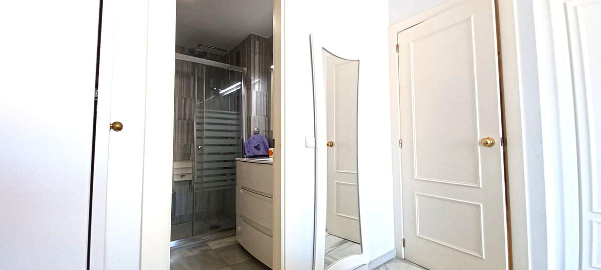 Discover this spacious and bright flat in an iconic building with an exceptional location just 30 metres from the seafront promenade and surrounded by all kinds of shops, cafés, restaurants and services such as private clinics, health centres, public transport, etc. The apartment is part of a fully enclosed community and, in addition to a concierge service, has well-maintained communal areas and a swimming pool surrounded by beautiful communal gardens with a solarium. A property that undoubtedly offers everything you need to enjoy life in Marbella by the sea. It has a total built area of 113 m2 plus communal areas and a garage space not included in the price (45.000€). It is distributed in an entrance hall, a fully furnished kitchen equipped with Siemens appliances with access to a terrace, a spacious living-dining room with 2 exits to terraces, one of which is enclosed and glazed with Lumon and fitted out as a summer dining room, a master bedroom with fitted wardrobes and en-suite bathroom, and a second bedroom with fitted wardrobe and bathroom. There is also the possibility of easily converting a space into a third bedroom, adapting it to your needs. Good quality construction. Hot and cold air conditioning, intercom, double-glazed windows. Marble floors. Optional furniture. This property is not only ideal for living by the sea and its promenade in one of the most privileged areas of Marbella, but also an excellent investment opportunity in a property that is constantly increasing in value and offering high rental yields.