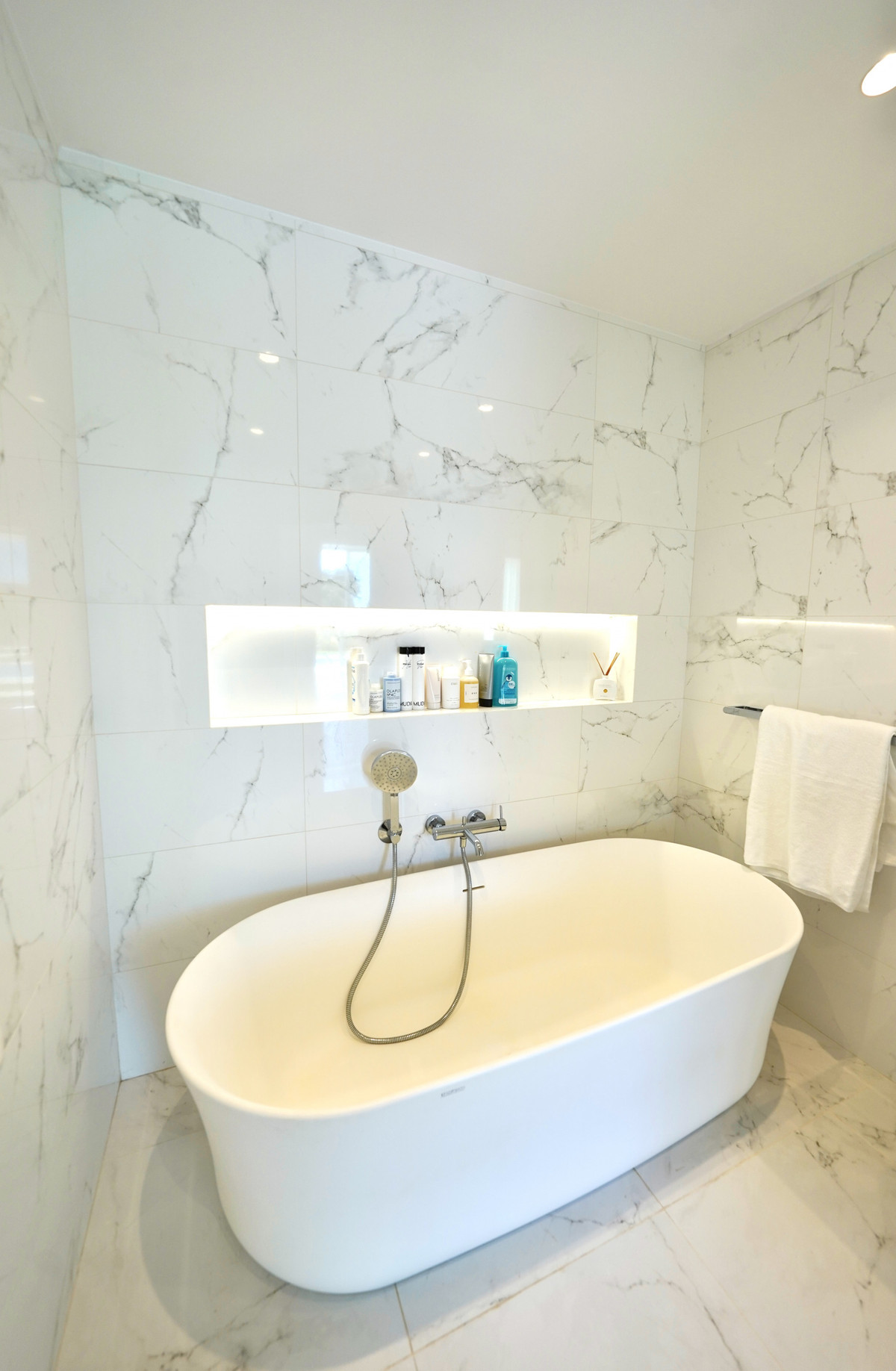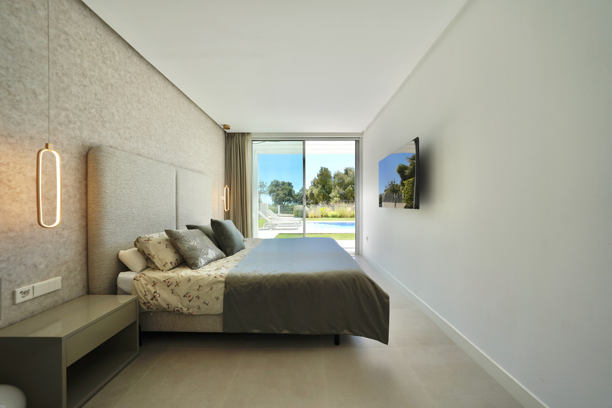 On the garden level, four spacious bedrooms open directly to the pool and landscaped grounds, creating a private retreat for family and guests. Elegant bathrooms with walk-in showers and refined finishes enhance the sense of comfort and style, while the connection to the poolside terrace makes this floor ideal for relaxed, resort-like living.