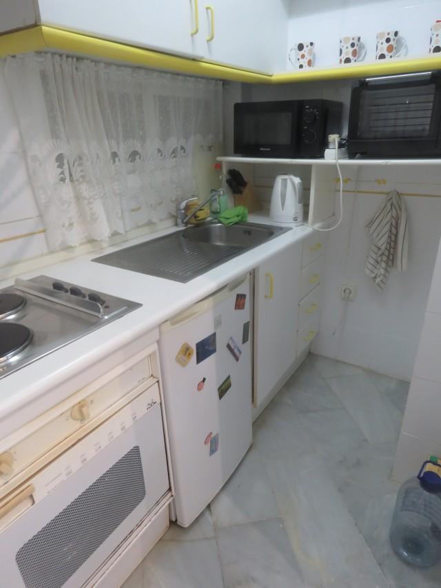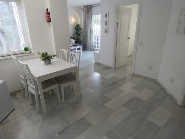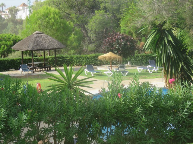 This is a special ground floor apartment. It is very bright and light and feels very spacious. It has a bathroom and a shower room. Two good size double bedrooms. There is a separate dining area that flows into the living area. There is a cozy kitchenette that could easily be opened up to make it more spacious. There is a small south facing covered terrace that leads out into the community garden. Because it is a corner apartment it feels like your own private garden. Plenty of outdoor space. The community as a lovely pool area. This is truly a little gem.