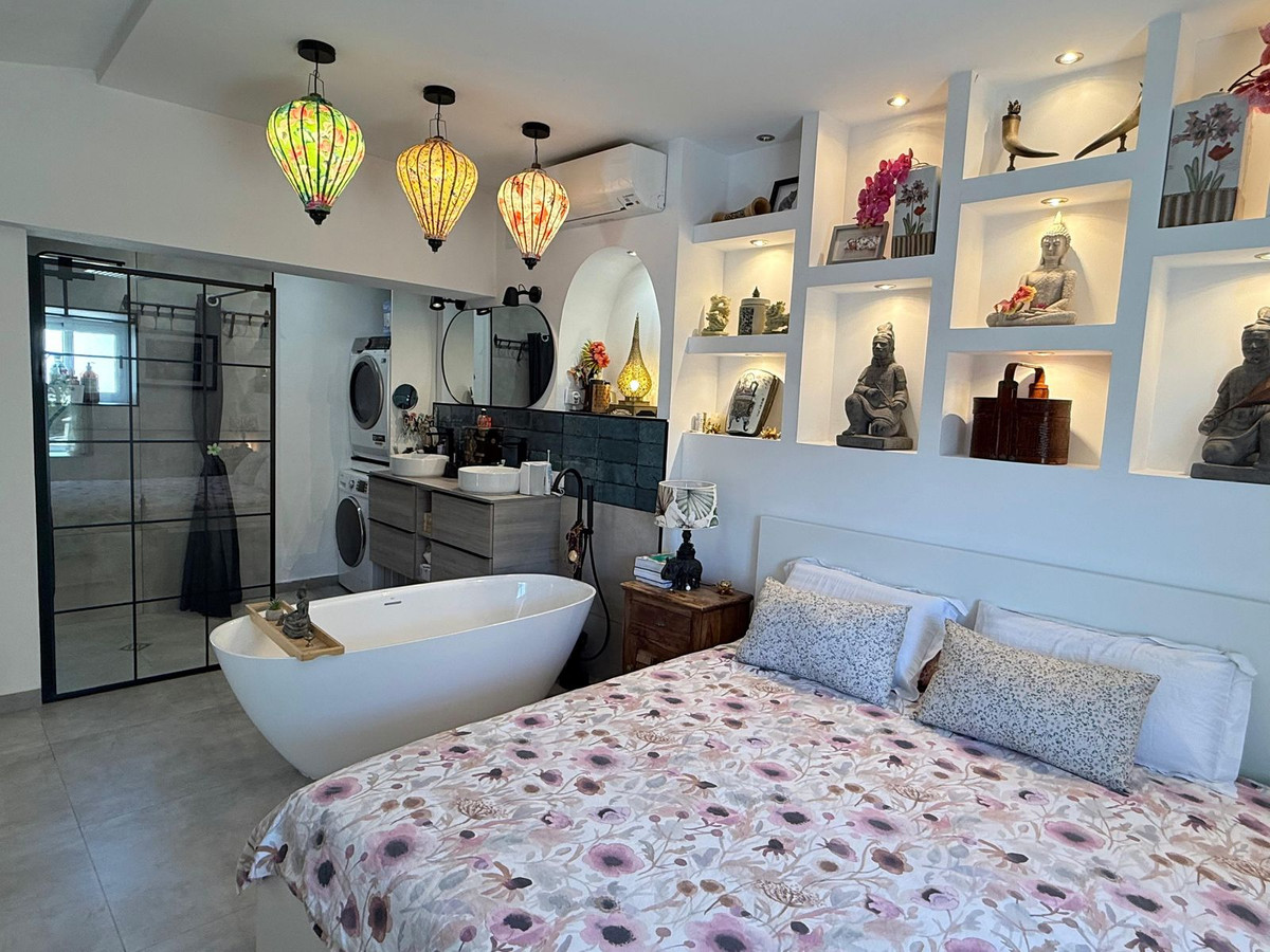 Annexed INDEPENDENT STUDIO with a bedroom and en-suite bathroom, plus a private porch. Space for a small kitchenette.