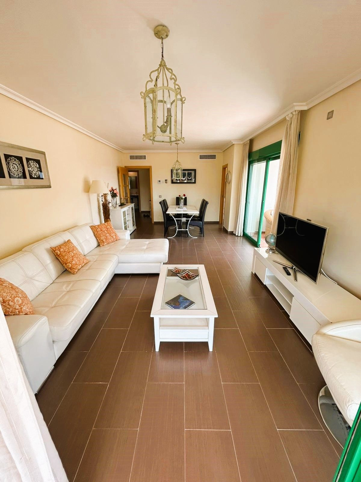 Located in Selwo, Estepona, this bright corner apartment, built in 2007, is set within a peaceful and well-maintained community. It features 2 double bedrooms, 2 bathrooms, and a spectacular south and west-facing terrace, perfect for enjoying the spacious outdoor area with stunning mountain views and distant sea views.