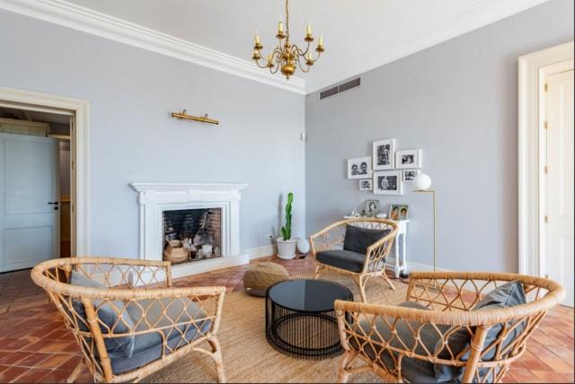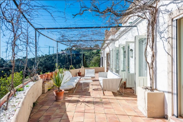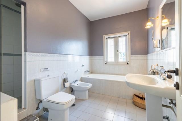 The main house has an elegant entrance hall with a high ceiling, a living room with a fireplace, a bedroom suite with a fireplace that is currently used as the TV room, with access to the terrace with fantastic views. On the other side of the living room, there is a very large dining room with a fireplace, with an exit to another informal