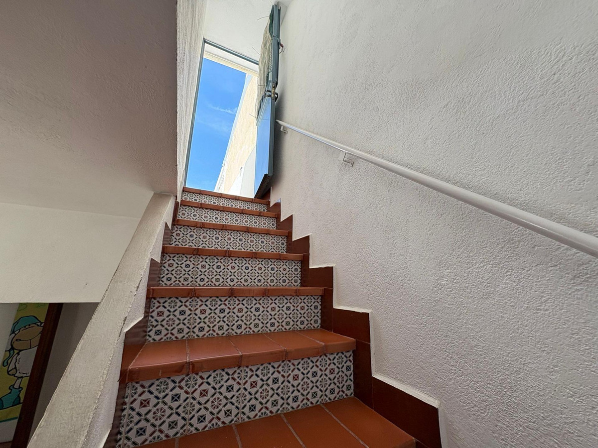 The property is distributed over two floors plus a spacious rooftop terrace. On the ground floor, you'll find one bedroom, a small bathroom, a cozy living room, and a functional kitchen with access to a small patio. The second floor features two bright bedrooms and a full bathroom. The terrace, approximately 45 m2, includes a laundry room and boasts beautiful sea views, making it the perfect space to relax, enjoy outdoor dining, or create a chill-out area.