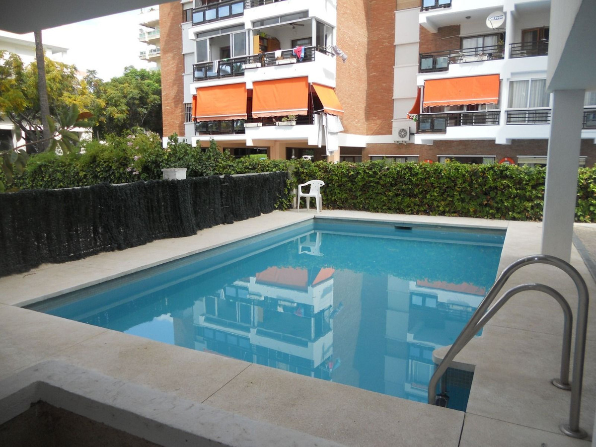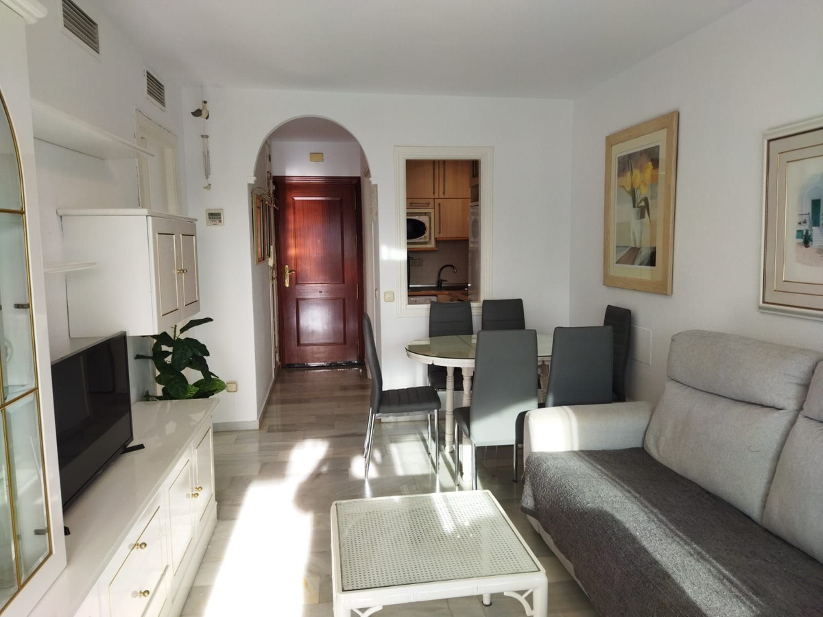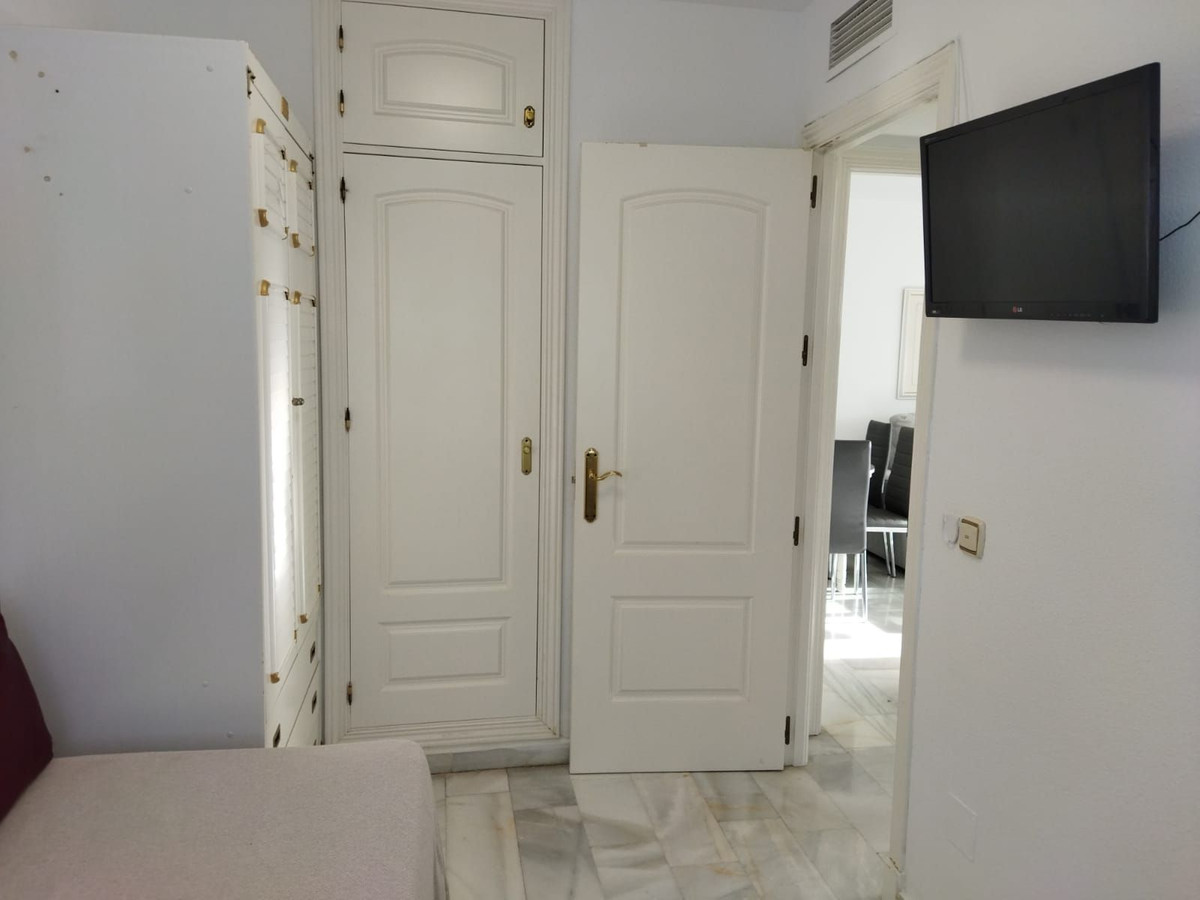 LA FONTANILLA!!!! APARTMENT WITH GARAGE, STORAGE ROOM, AND POOL!!! The best neighborhood located in the heart of Marbella. The apartment is on the sixth floor, facing southwest, which provides excellent natural light and includes hot/cold air conditioning. It comprises two bedrooms and a full bathroom with a shower and a window between the bedrooms, a living room with a separate, fully equipped kitchen, and a glazed terrace with glass curtains, allowing you to enjoy it year-round. It offers open and unobstructed views and has a concierge service.