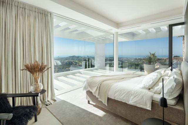 A contemporary villa for sale in La Quinta. With a south-facing orientation, the villa captures panoramic views that sweep from the majestic La Concha Mountain across the Mediterranean to Gibraltar, ensuring that every sunrise and sunset instills a tranquil sense.