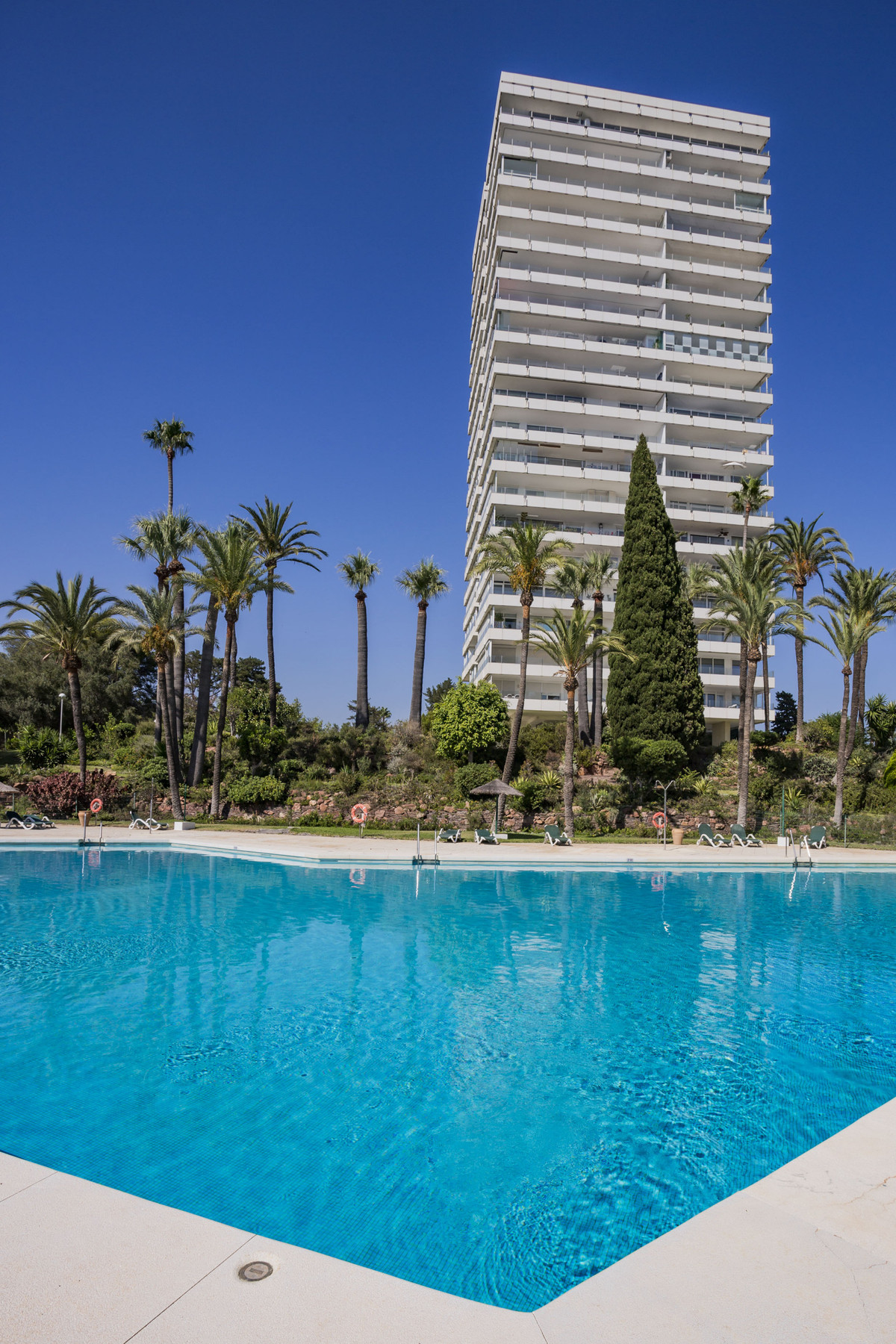 The building, where the property is sitting, is known for its height and prime location, offering 40,000 m² of communal gardens with fantastic amenities, including two swimming pools, tennis courts, paddle tennis courts, a barbecue area, and a children’s playground.
