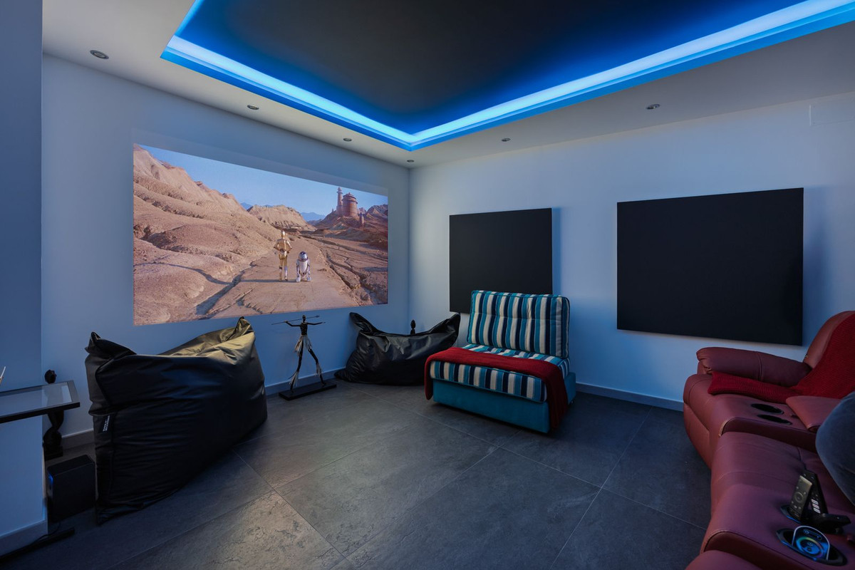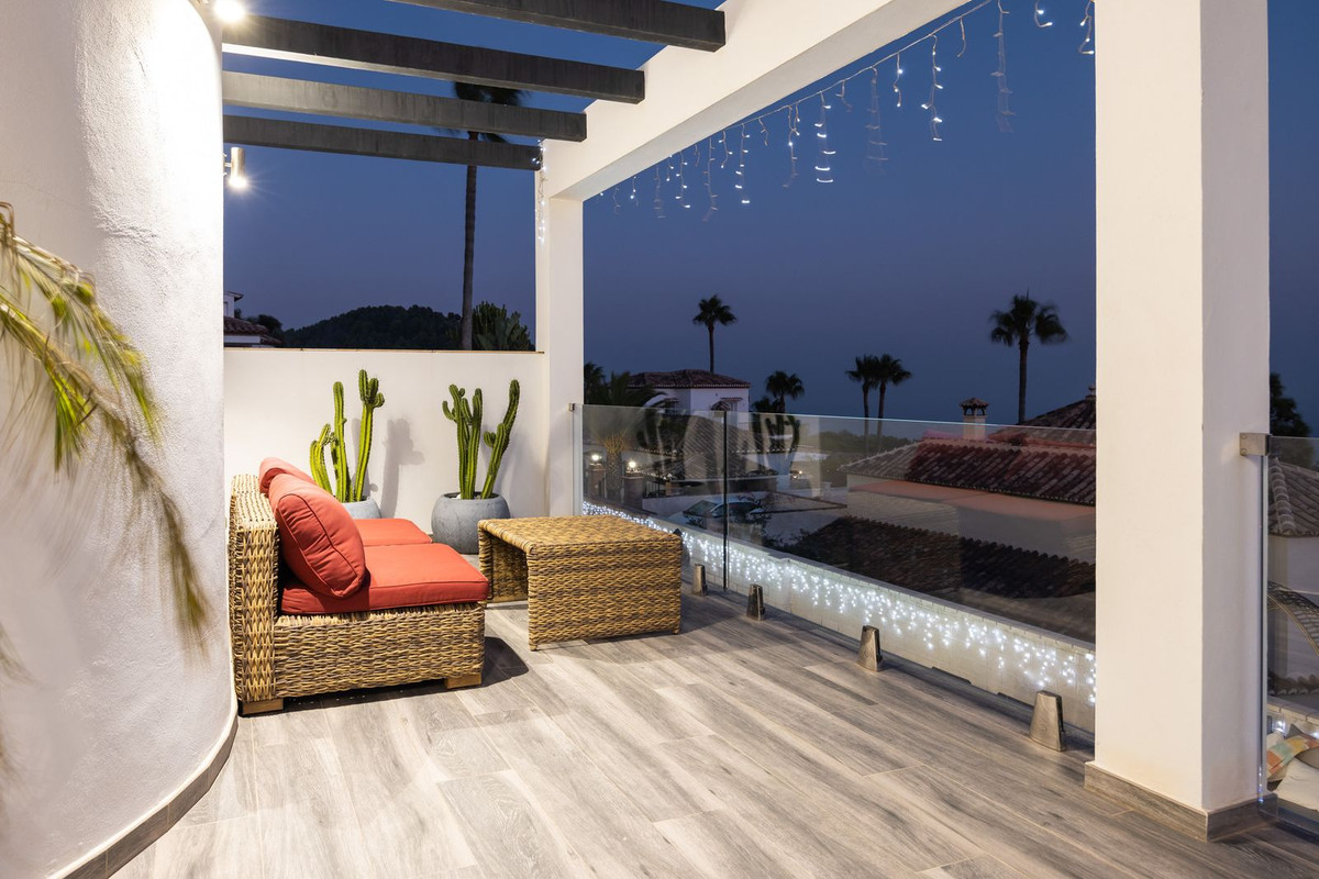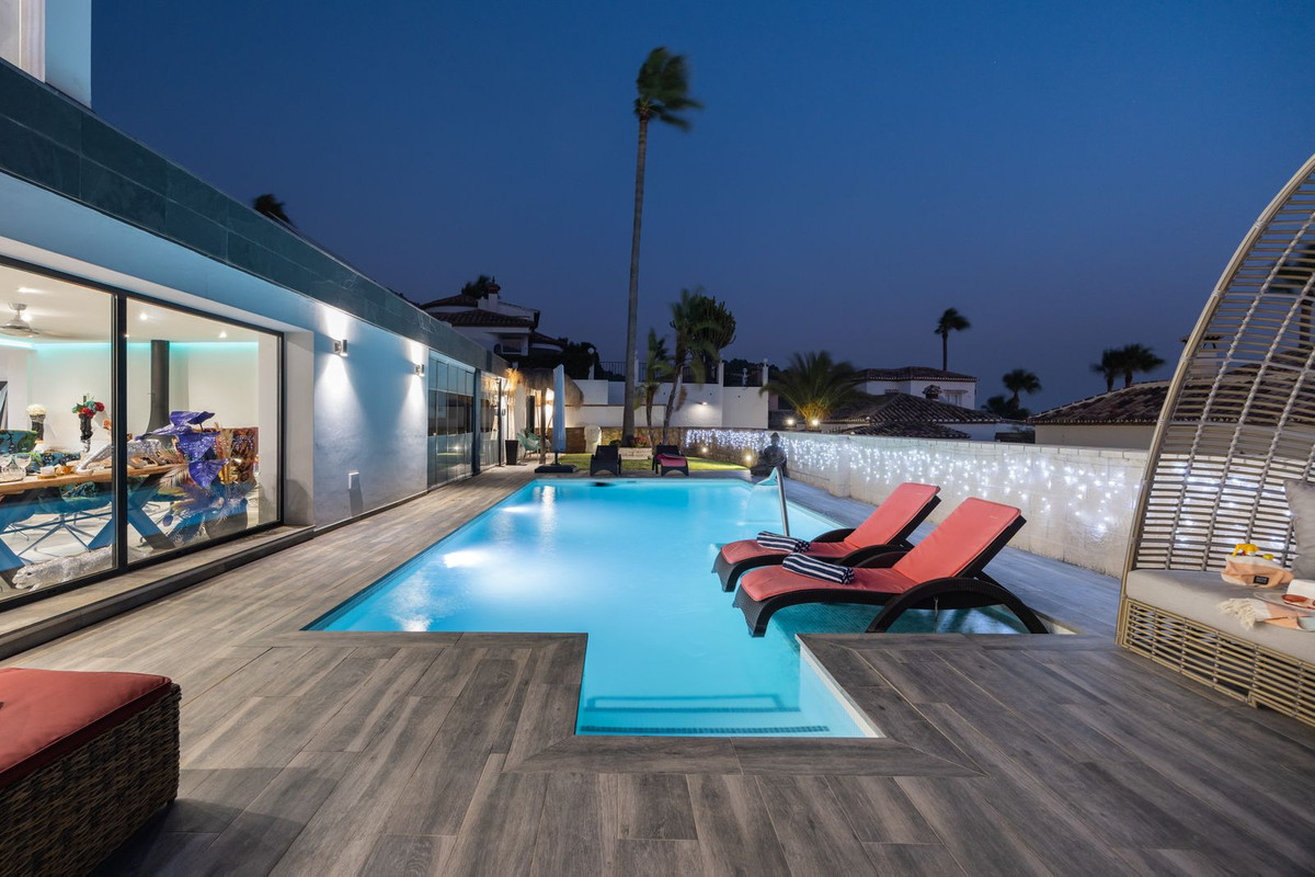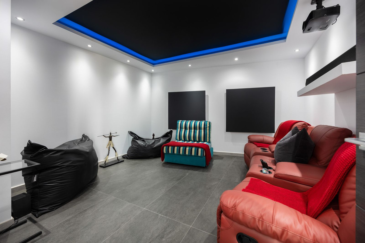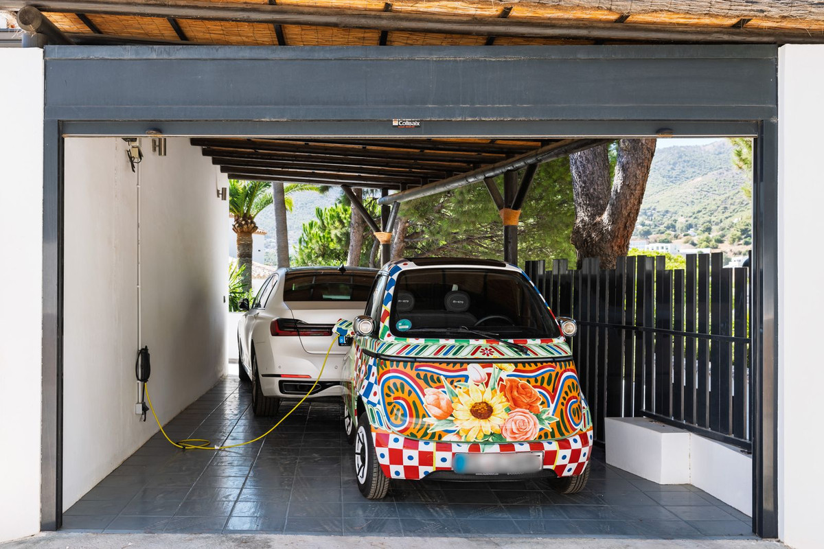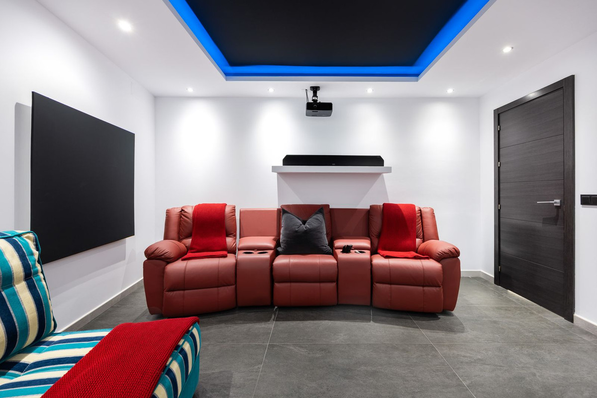 Spectacular villa that perfectly blends Mediterranean style with contemporary design, combining traditional charm with modern comfort and top-quality finishes. Located in the prestigious Buena Vista area of Mijas, it offers a unique lifestyle in a peaceful and private setting, with stunning panoramic views of the Mediterranean Sea, the coastline, Africa, and the mountains. Set on a plot of 800 m² with a built area of 251 m², the property is in immaculate condition and ready to move into. Its location is unbeatable: just 5 minutes from Fuengirola, 2 minutes from the exclusive Higuerón commercial area with all kinds of services, 10 minutes from the finest beaches of the Costa del Sol, and only 20 minutes from Málaga city center and the airport. The villa is mainly distributed on one floor, ensuring functionality and comfort. Upon entering, the home immediately stands out for its brightness and sense of space thanks to the open-plan design. The modern fully fitted kitchen seamlessly integrates with the spacious living room with fireplace, creating a warm atmosphere that connects with the terraces and garden through large sliding doors. The exterior is a true private retreat, featuring a swimming pool with sunbathing area and hydromassage jet, a barbecue area ideal for outdoor gatherings, and a landscaped garden with fruit trees, all with open views to the sea and mountains. The property offers four bedrooms. The master bedroom, with en-suite bathroom and walk-in wardrobe, has direct access to a terrace with a private jacuzzi. Two additional bedrooms with their own bathrooms are located on the opposite wing of the house, ensuring privacy for family or guests. On the upper floor, a versatile space currently used as a gym with bathroom and private terrace can easily be converted into an independent suite with spectacular views. Additional features include a cinema room, sauna, laundry room, air conditioning, solar panels for hot water, and parking space for three vehicles, including a closed garage and covered carport. An ideal residence both for year-round living and as a luxury holiday home, perfect for those seeking privacy, comfort, and a strategic location on the Costa del Sol.