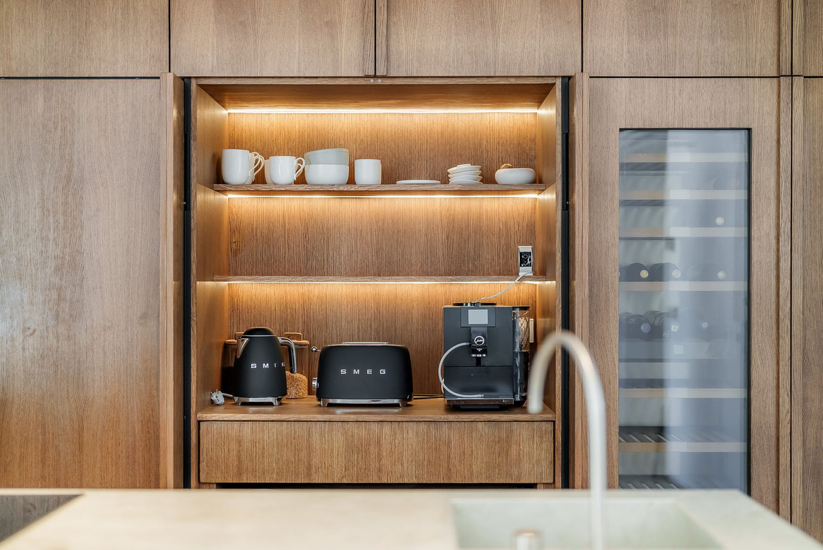On the first floor you will find an open space living room together with custom made bespoke kitchen. Guest bedroom with the direct access to the garden and the terrace as well as guest bathroom. On the second floor there are 3 bedrooms and all with en suite bathrooms where master bedroom also has its own walk-in closet and private terrace overlooking the pool area. As an added value this apartment also has a laundry room that leads directly to the garage.