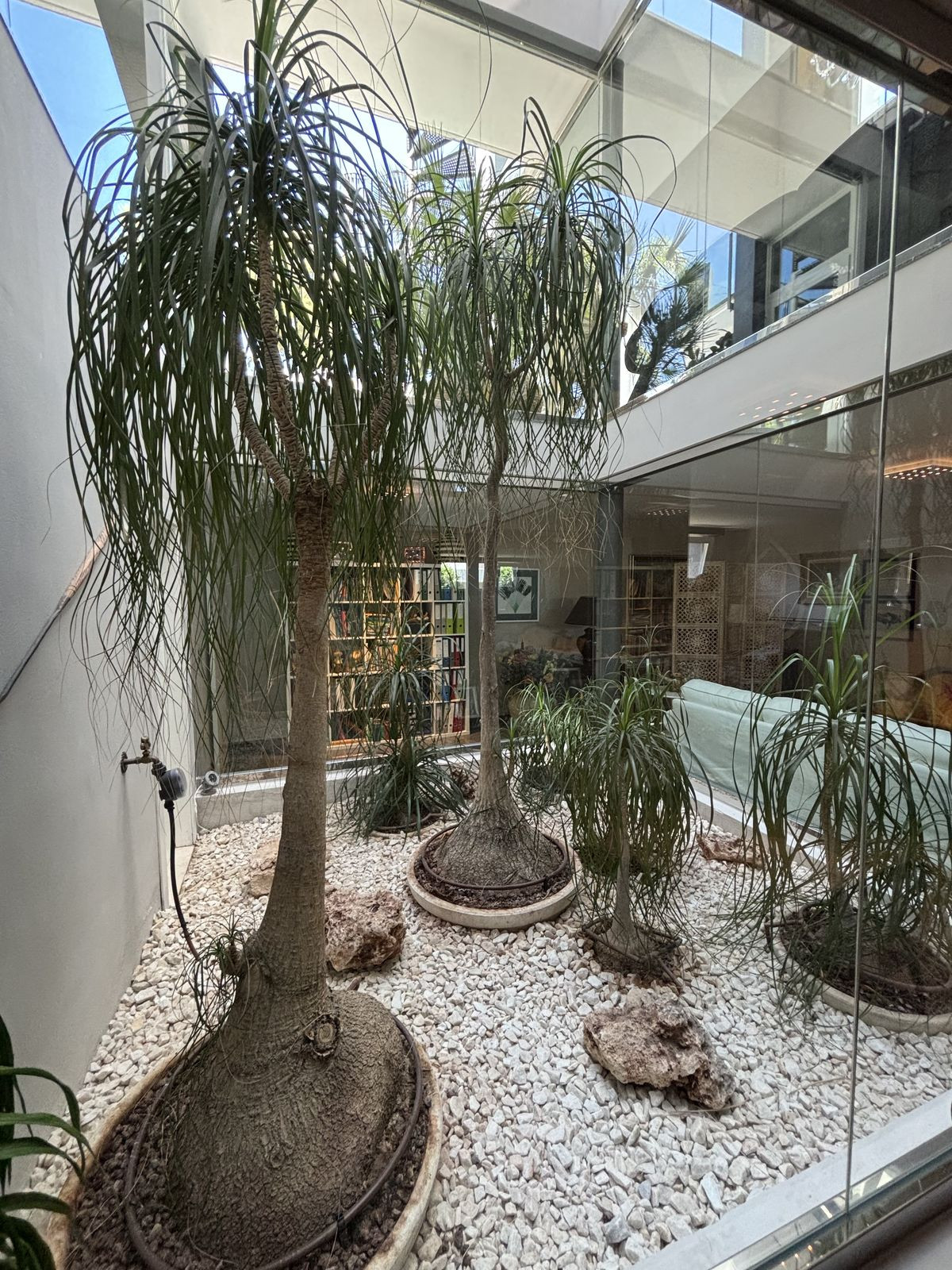 The villa features 5 spacious bedrooms, including a separate guest bedroom in the basement with its own private entrance — ideal for visitors or staff. A standout feature is the glass wall inside the home, showcasing an indoor garden that brings a touch of nature indoors.