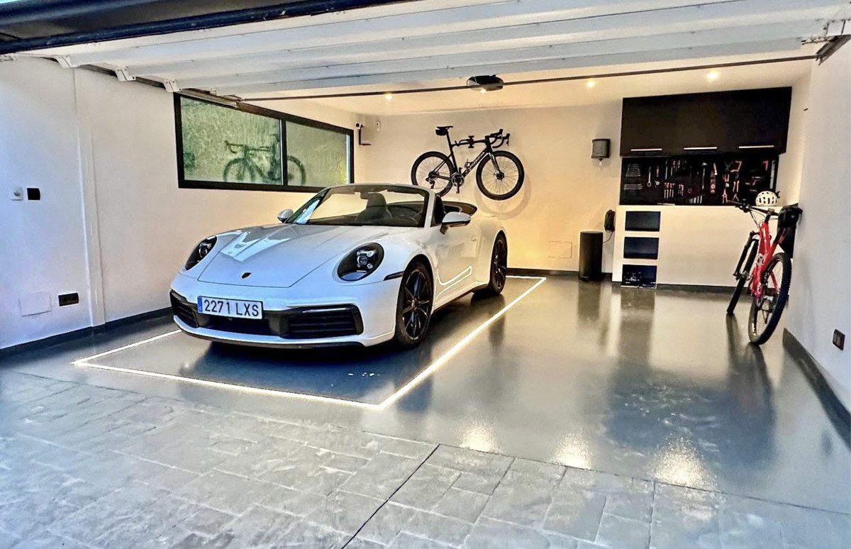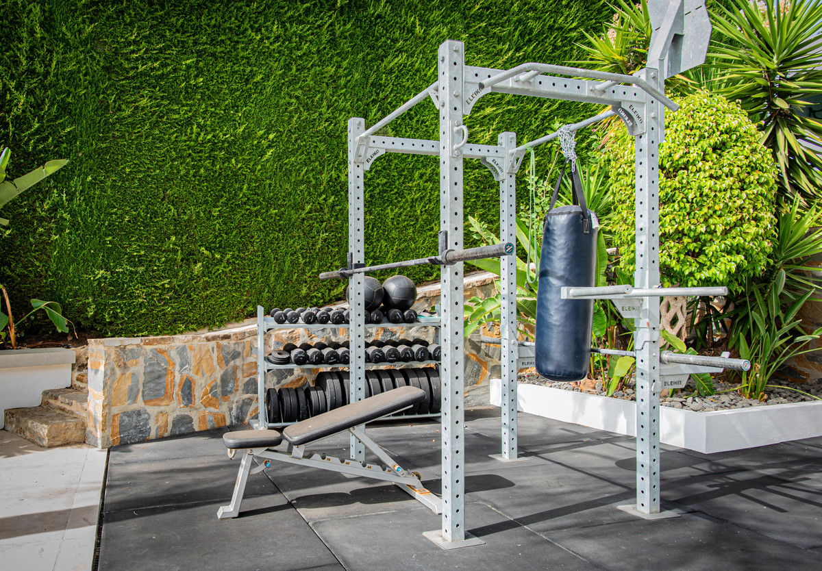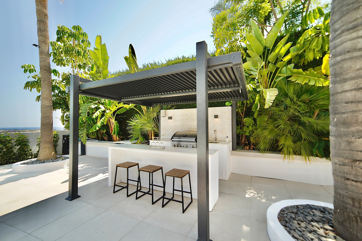The thoughtfully designed home features five spacious bedrooms and five bathrooms, ensuring comfort and privacy for family and guests alike. The outdoor living experience is truly exceptional, with a private garden showcasing a sparkling pool, fully equipped outdoor kitchen, and a dedicated gym area – perfect for embracing the active Mediterranean lifestyle. The property includes a generous two-car garage, providing secure parking and additional storage space.