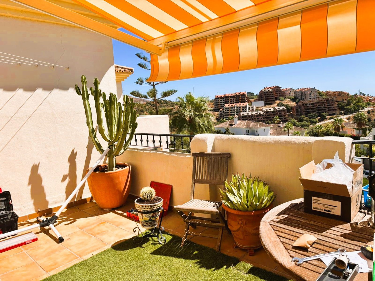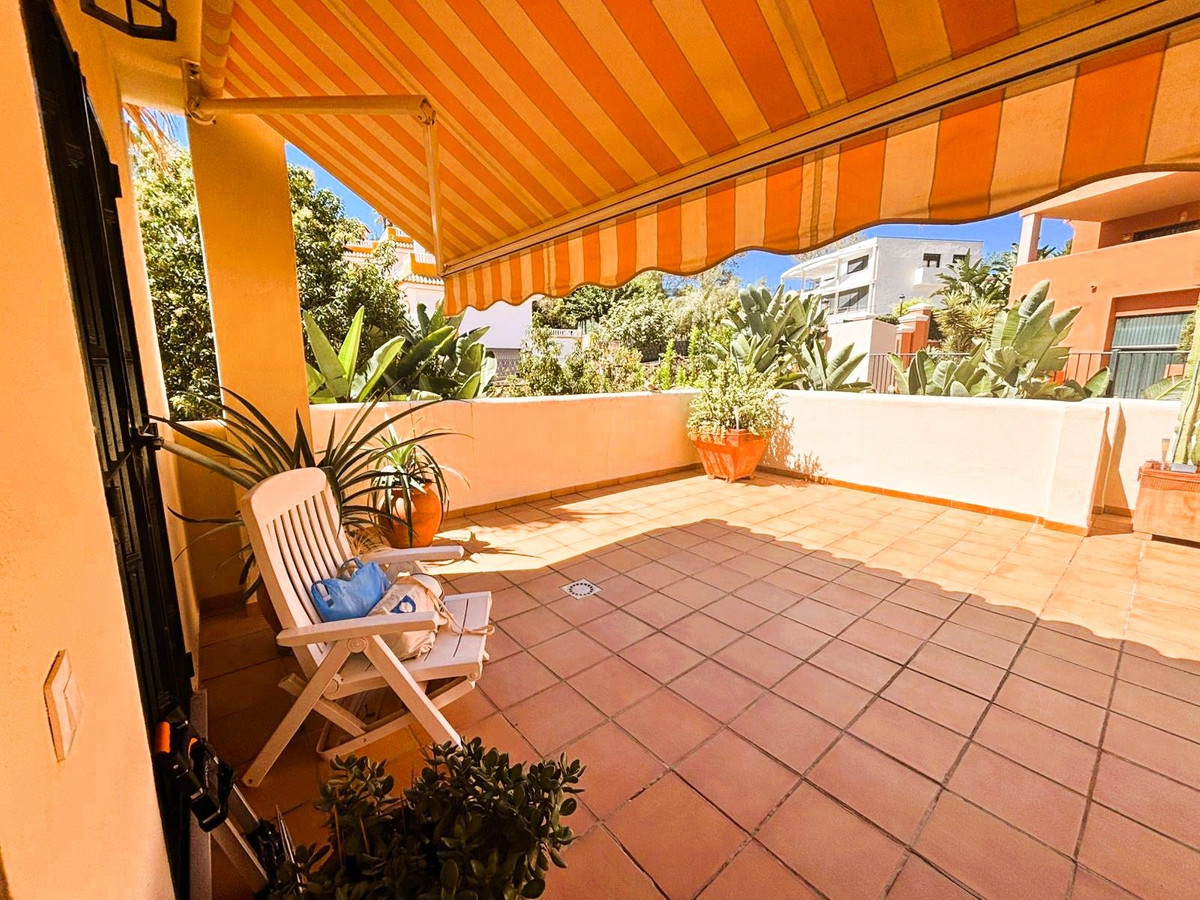 Beautiful property for sale in perfect condition in the Elviria area, close to the golf course and less than a 5-minute drive to the beach! Quiet, very residential urbanisation, ideal for permanent residence. Duplex , is on the ground level but with hight , no lift or stairs, very comfortable!!! The property is on a corner, so it is very sunny and bright and has sun all day long! Very large terrace at the entrance of the house, with awnings and afternoon sun. Upon entering, we find a spacious living room with an open, fully equipped kitchen, from the living room access to the second terrace, which faces south and offers open views of the sea, with sun all day long! There are also new awnings!