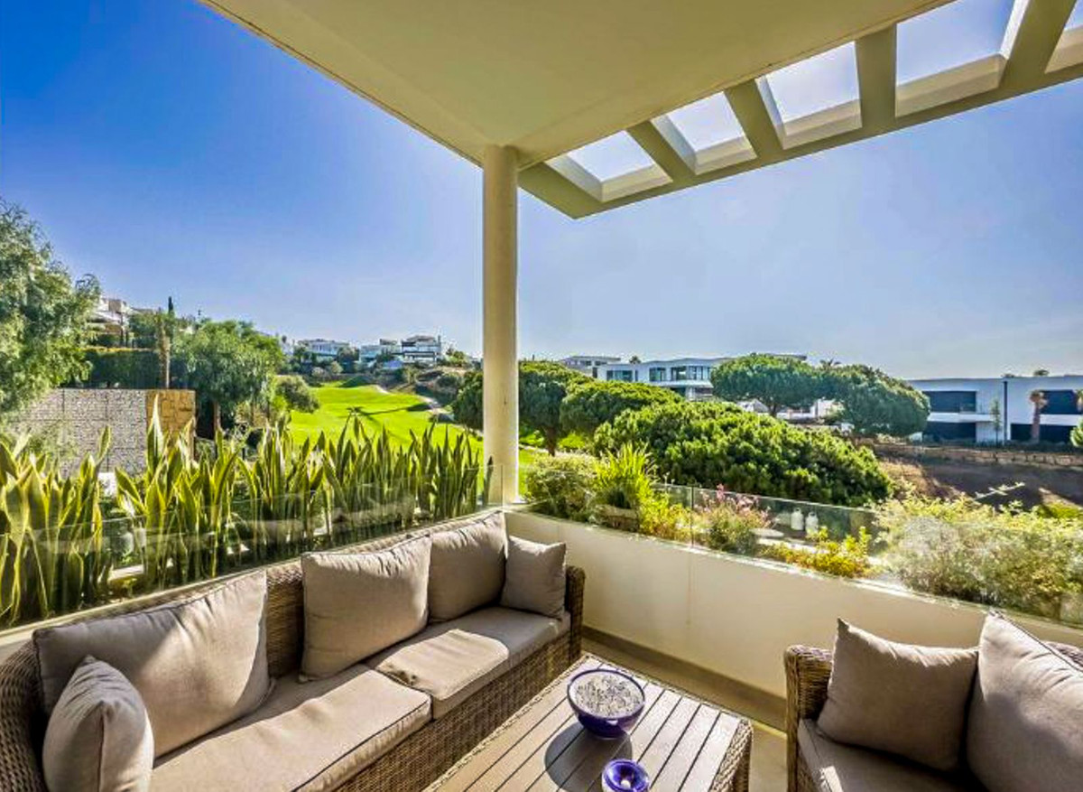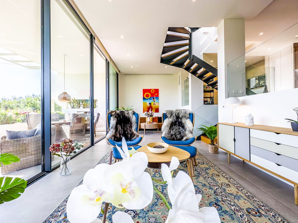 This architect-designed semi-detached Villa is part of the prestigious urbanization The Cape in Cabopino, Marbella East. With a privileged frontline golf position and just 800 m from Cabopino Beach and Marina, the home combines tranquility, comfort, and modern Scandinavian-inspired design.
