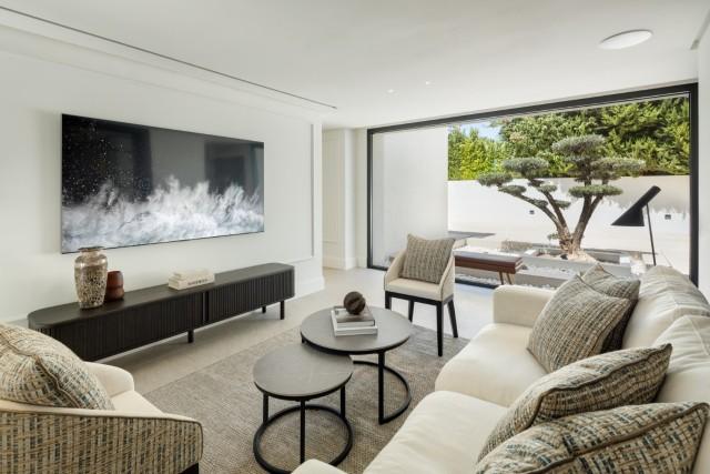 This striking contemporary villa for sale in the heart of Nueva Andalucía combines Mediterranean-inspired architecture with modern elegance and superior craftsmanship. Designed by acclaimed local architect, the residence blends clean lines, natural materials, and bespoke finishes to create a refined yet highly functional home.