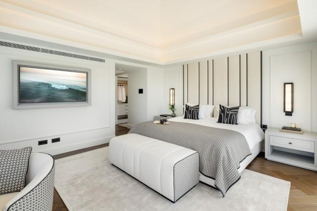 The entire top floor is dedicated to the master suite - a private retreat featuring a walk-in dressing area, luxurious bathroom, and access to two secluded terraces with sea views and a private hot tub.