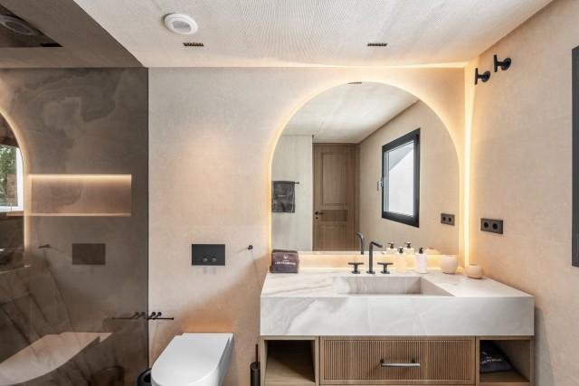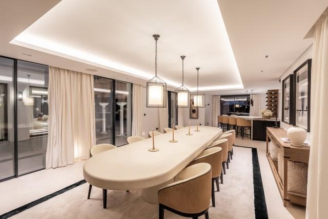 The ground floor stands out for its wellness area with a spa, sauna, steam room, gym, and private cinema, as well as a garage with a rotating platform. With multiple TV lounges and a balanced layout, this property offers an exclusive, refined, and practical lifestyle in one of Marbella's most sought-after areas.
